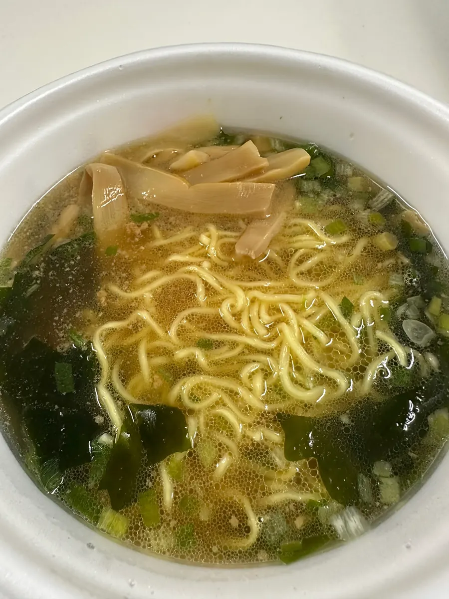 はい、このラーメンと思われる麺類にわかめとシナチクを投入しました。