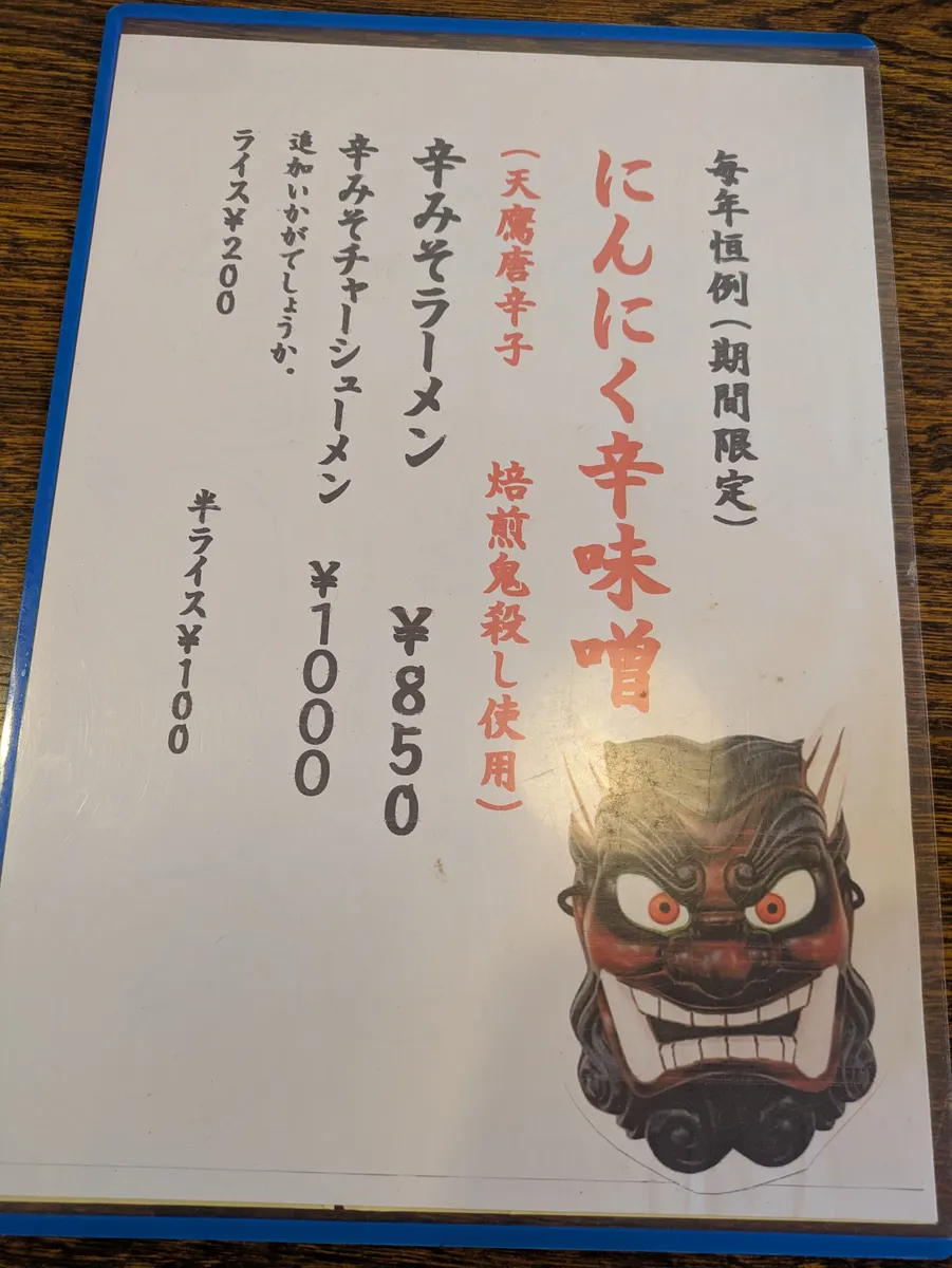 トップ > 今日の凄メシ! > にんにく辛味噌チャーシュー麺 くろねこ 2025/12/29 13:52 にんにく辛味噌チャーシュー麺 毎年恒例(期間限定)らしいので 定食辞めてこちらに 辛さは普通🤔夏辛の方が辛いかも 定食屋さんのラーメンって感じです🤗 ご馳走様🙏でした。 いいね 共有する 共有する X facebook LINE リンクをコピー コメントする 2 件の返信 (新着順) ミュートしたユーザーの投稿です。 投稿を表示 武 2025/12/31 07:25 定食屋さんのラーメンって感じっていうコメントで 味が想像出来ます🤤 普通に美味しそうですね👍 いいね 返信する ミュートしたユーザーの投稿です。 投稿を表示 くろねこ 2025/12/31 07:52 そうなんです!普通なんです☺️w 若かったら野菜炒め定食に辛味噌チャーシュー🖐️ 味噌汁変わりに食べていたかも いいね 返信する ミュートしたユーザーの投稿です。 投稿を表示 チョコマシュマロ 2025/12/29 18:14 くろねこさん😺 鬼の面👹 鬼辛ということではなく?🤔 私の場合、夏辛はスープ飲めたのですが、 仙台辛味噌は飲めませんでした😅 いいね 返信する ミュートしたユーザーの投稿です。 投稿を表示 くろねこ 2025/12/29 18:54 こちら方面で 「鬼◯し」と言う商品がありまして それを使用した辛味噌がドンと乗った味噌󠄀ラーメンです😊 仙台味噌󠄀、夏辛より辛かったでしたか? 近いうちに食べて思い出します(笑) いいね 返信する