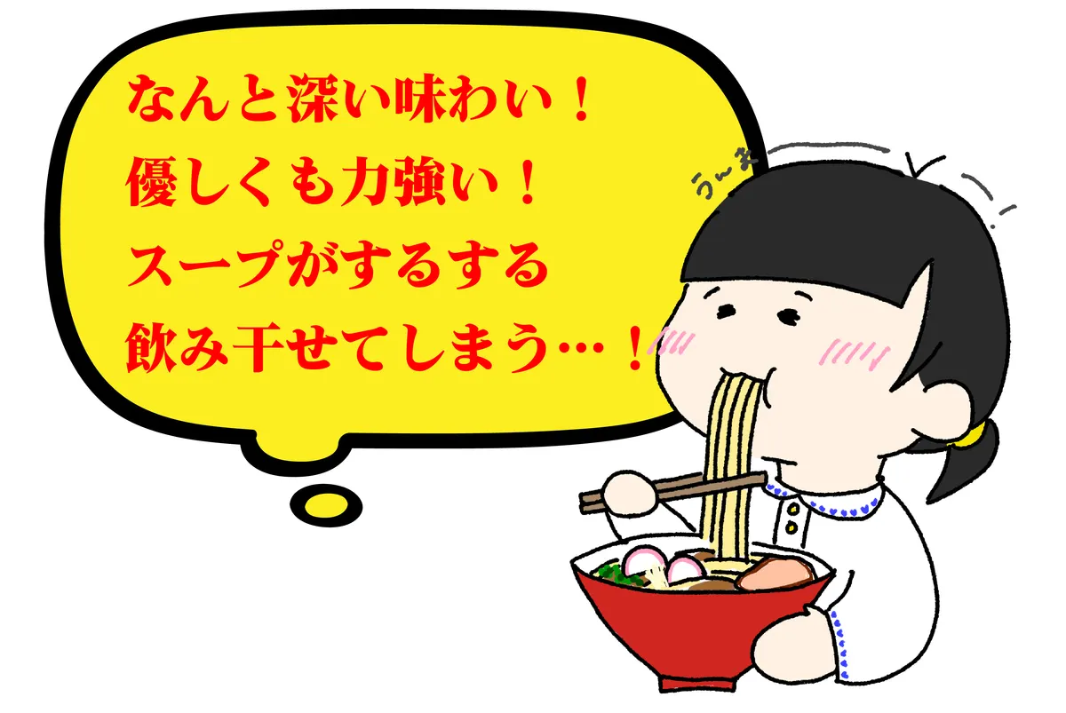 「なんて深い味わい…!鶏と醤油のシンプルな味で優しいのにすごく力強い…!スープがするする飲み干せてしまう…!いつでも飲めるように水筒に入れて持ち歩きたい…!」