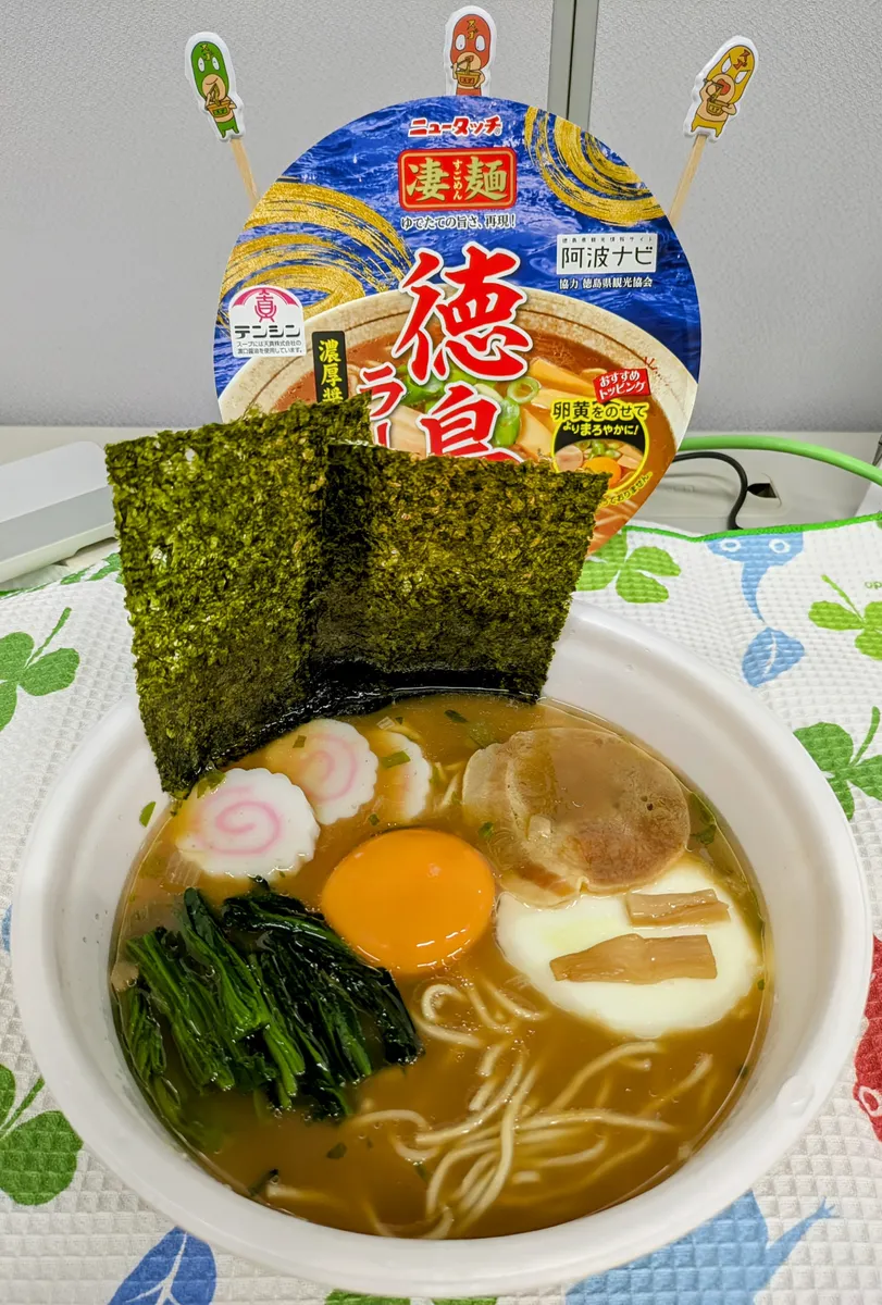 投稿を表示おはようございます。卵黄乗せの徳島、美味しいですよね!全凄麺体験を済ませて早くリピートしたいと思ってる一品です。ところでメンマの下の白いのは何でしょう?卵白?にしてはずいぶん完璧な円形だし…