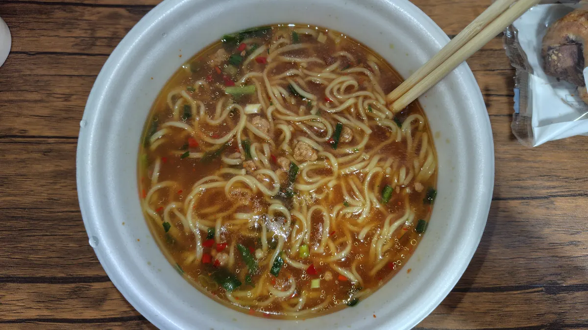 麺をすすると、とろみのついたスープを麺が一緒に持ち上がって