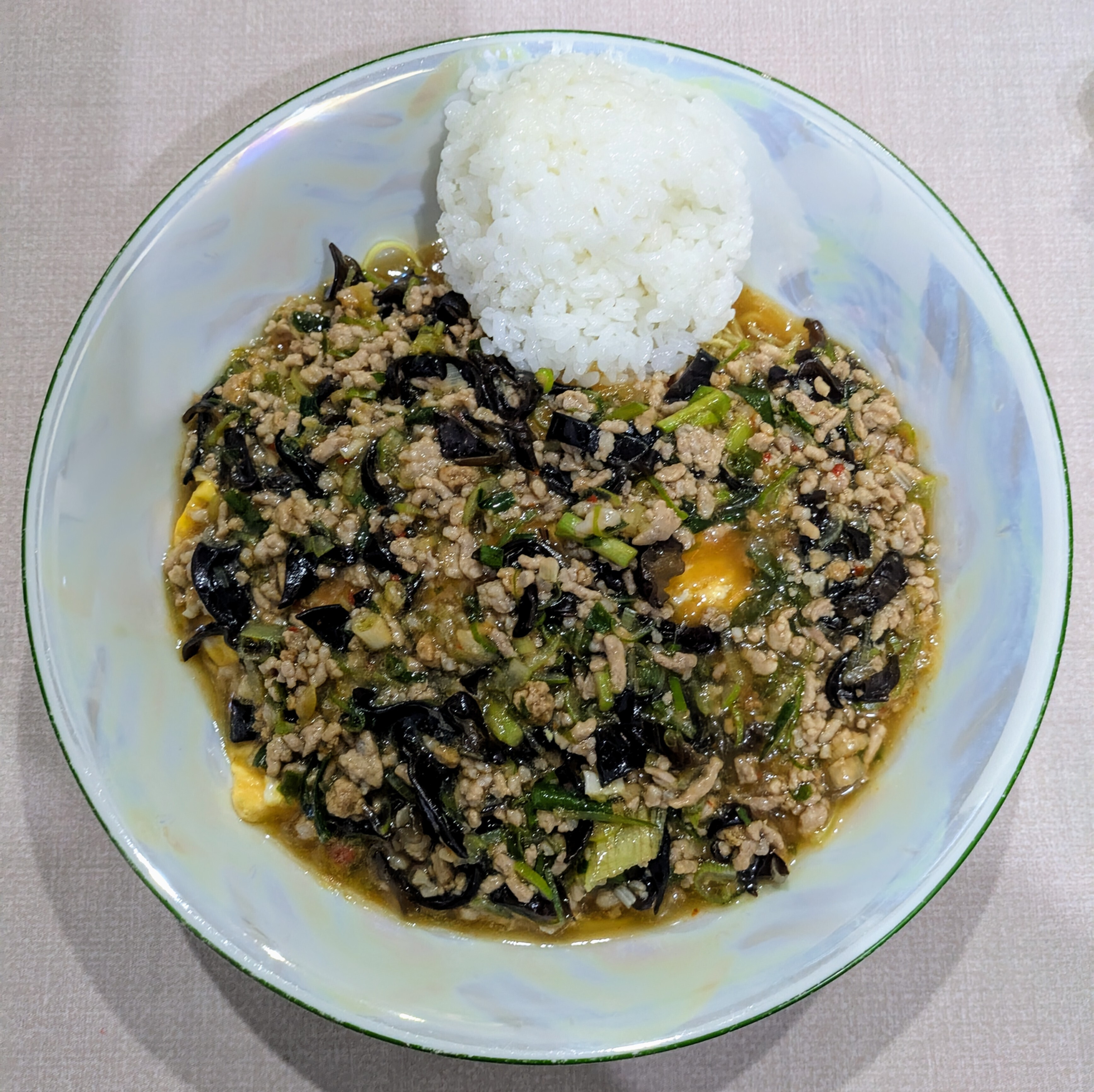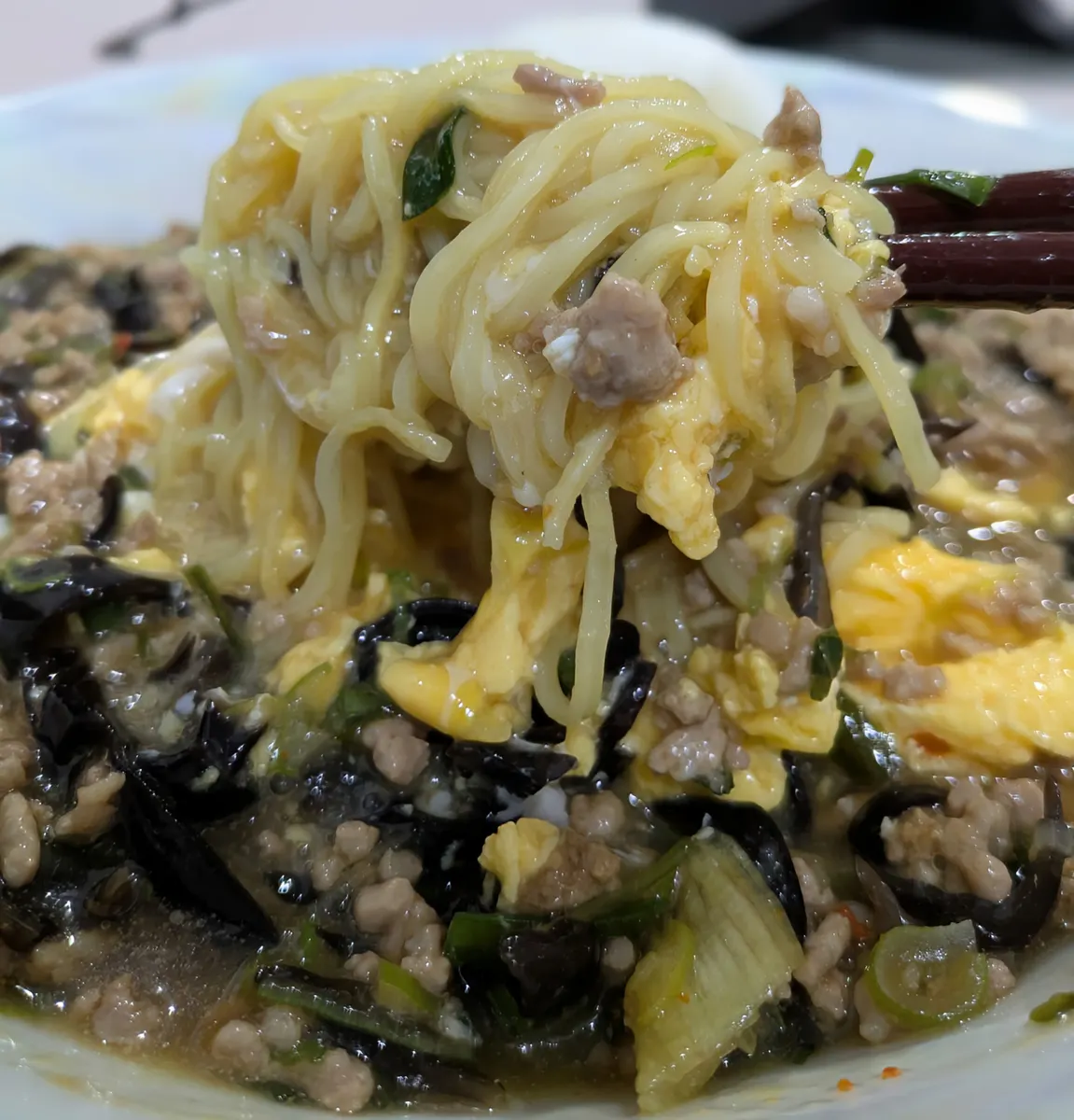 卵、長ネギ、きくらげ