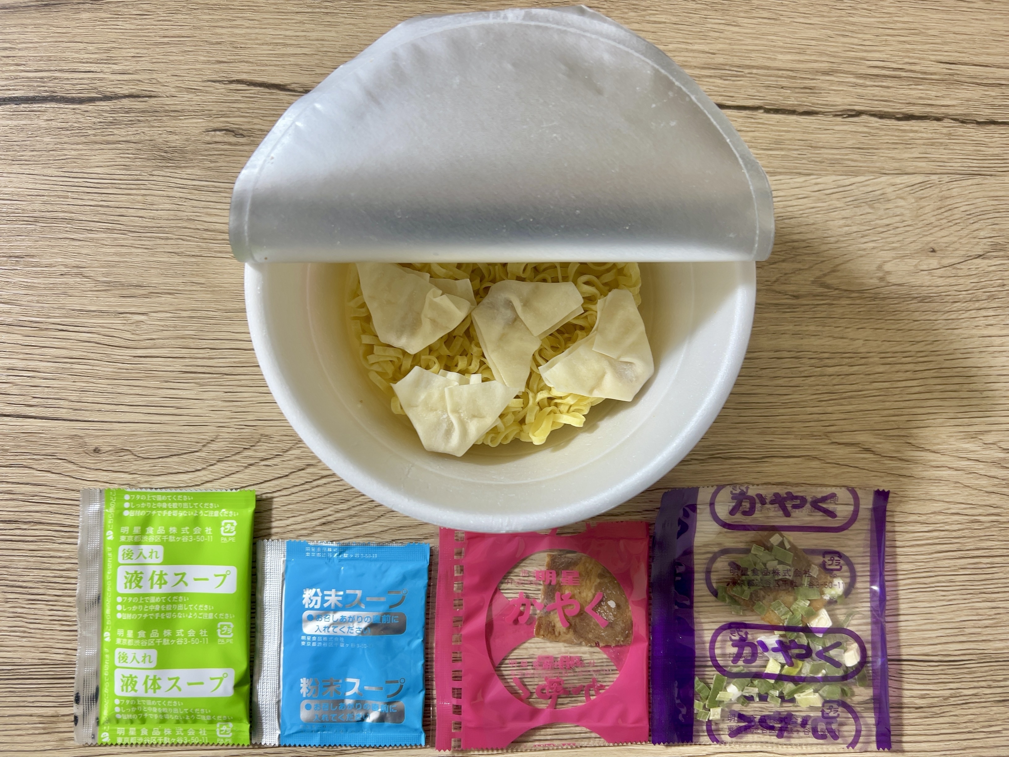 ノンフライのワンタンは明星食品さんの十八番ですね