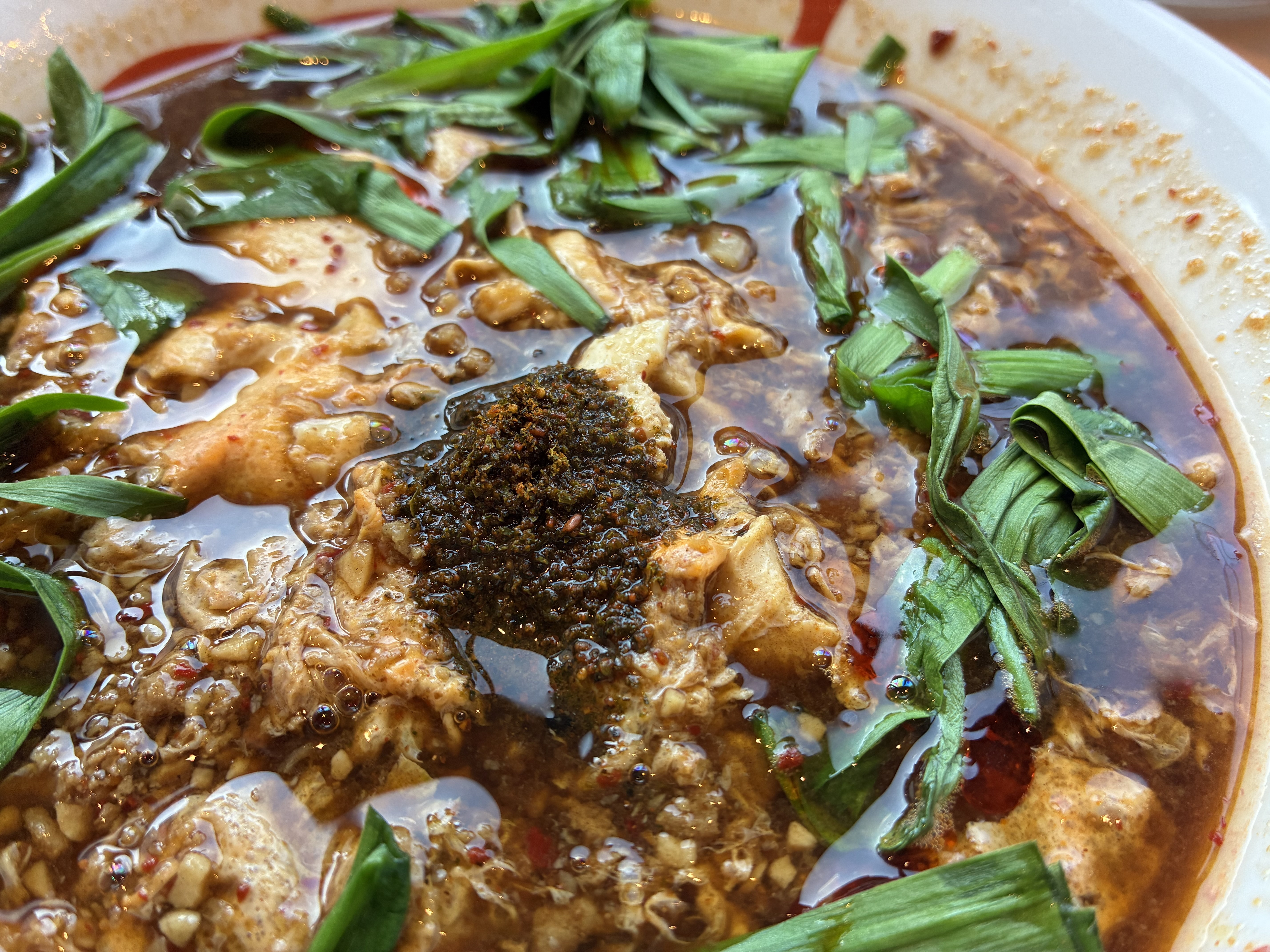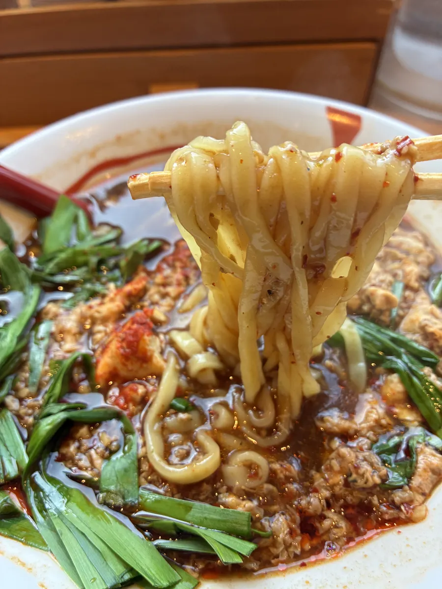 醤油ベースのスープにニンニク、唐辛子、山椒、かき卵にニラも加わりスタミナ満点でした!