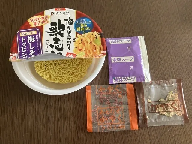 油そばですから重いイメージですが、梅しそトッピングに負うものが大きい商品と思いました。