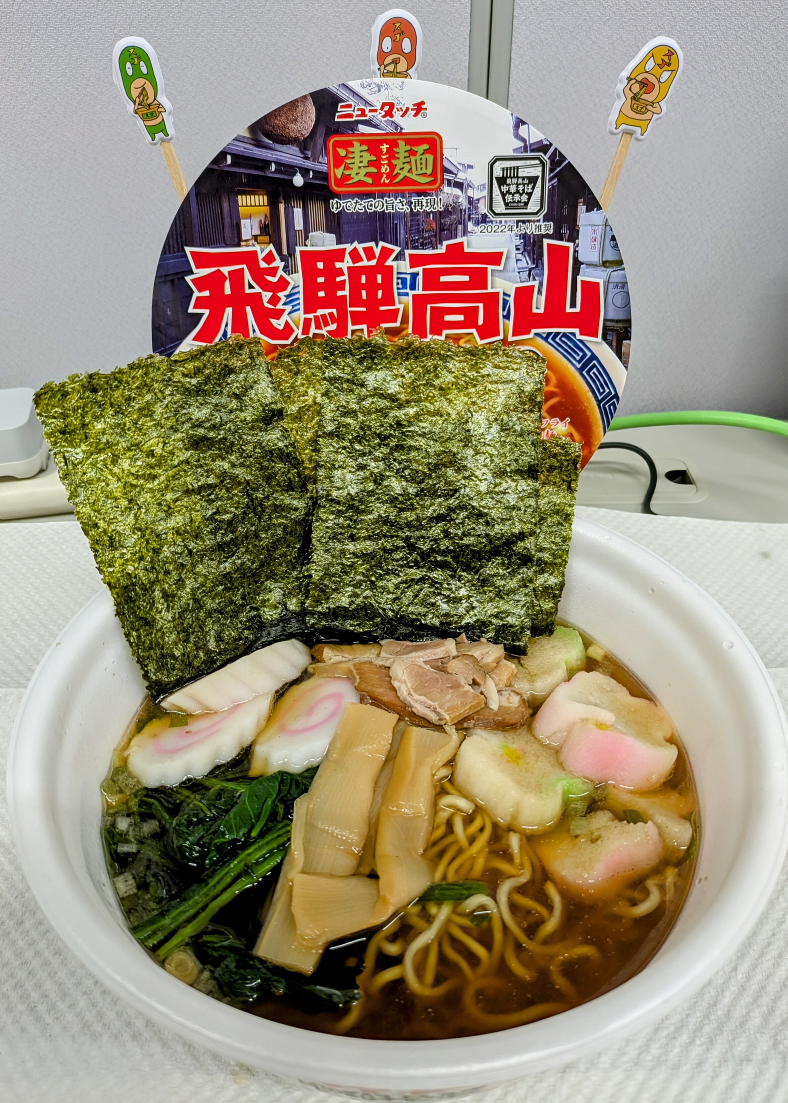 PC画面で飛騨高山の観光名所を見ながら麺をすすれば旅気分?ご馳走様でした。