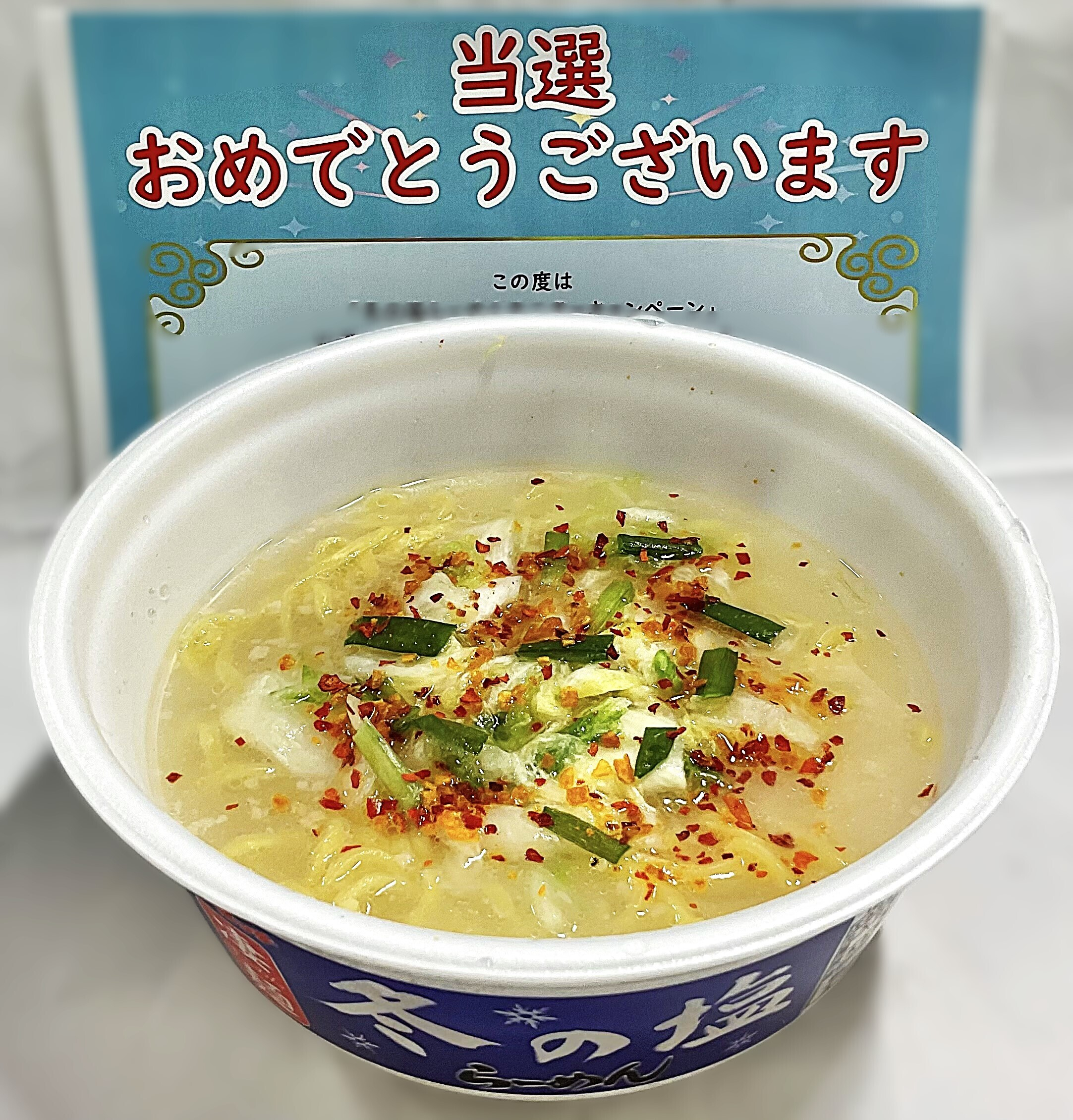 輝く「当選おめでとうございます」の文字。そうなんです。モニターキャンペーンに当選しました!ということで、お送りいただいた本品をありがたくいただきました。盛り付けにも細心の注意を払い、できあがったところを記念撮影していただきます~。前回も書きましたが、まず、寒い冬に嬉しいまろやか濃厚スープに舌鼓を打ち、舌がスープに馴染んだところでプリプリ太麺を一箸。麺を啜る合間にシャキシャキ白菜もパクリ。このまろやか濃厚というのがみそ、背油をただマシただけではくどいだけの味になってしまうところを、まろやかに感じさせる技は、さすがはヤマダイさん。まろやかだから、麺の良さ、白菜の良さも引き立ってくるのだと思います。それにしても高倍率の中で、なぜ自分が当選したのだろう?奇跡という言葉以外に思いつきません・・・