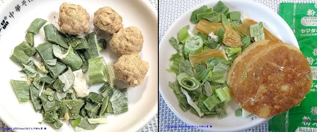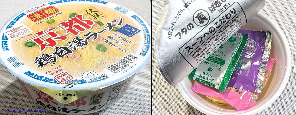 「京都背脂醤油」は5分湯戻し、「鶏白湯」は4分湯戻し・・・と違う麺です