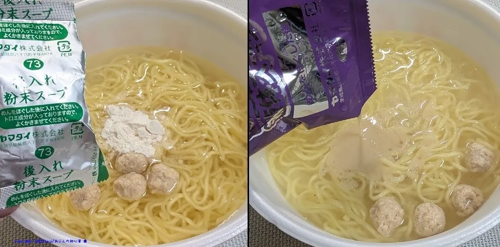 スープは先に粉末スープ入れ、しっかり溶かしてから液体スープね!