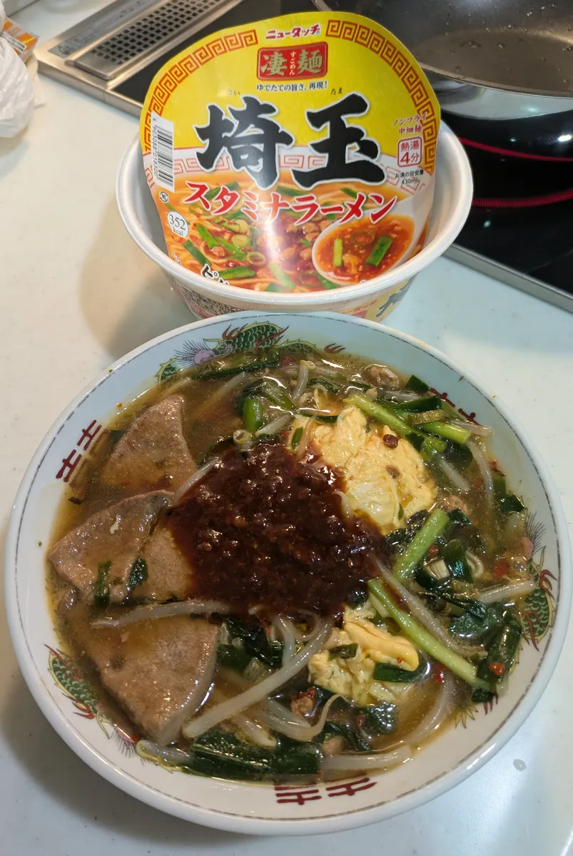 トップ > 今日の凄メシ! > 凄麺 食べました! > 推し麺 埼玉スタミナ🔥 くろねこ 2026/01/28 06:30 推し麺 埼玉スタミナ🔥 今朝の朝食は埼玉スタミナ スタミナつけて今日を頑張る🔥 ニラ、もやし、豚レバー、卵(写ってません)唐辛子(写ってません)別鍋調理して行きます。熱々🔥埼玉スタミナラーメン完成です🔥さすが埼玉!!いいじゃないか〜😆美味い‼️やつちゃうよね〜🤣開発1号さん見てますか‼️朝からやっちゃってますよ この餡掛けスープを纏った白飯の輝き🌟そしてこの旨さ!最後の最後まで熱々を無駄なく美味しく頂けました。 ご馳走様🙏でした。 やるじゃないか埼玉 いいね 共有する 共有する X facebook LINE リンクをコピー コメントする 2 件の返信 (新着順) ミュートしたユーザーの投稿です。 投稿を表示 新華 2026/01/28 08:23 週半ば、ちょいダレ気味の水曜日(w) 朝めしにこのスタミナラーメン! いいじゃないですか!! 待ってました!よッ!本領発揮(^^) いいね 返信する ミュートしたユーザーの投稿です。 投稿を表示 中電前の八百屋 2026/01/28 07:36 かなりのボリューム。なかなかスタミナが付きそうですね。またレバーが良いですねぇ。 いいね 返信する