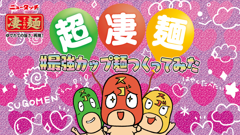 凄麺25周年を迎える今年、超会議に向かったスゴメンブラザーズはなぜか超メルヘンな世界に飛び込んでしまいました。そこは、マイフェイバリットな麺やスープ、具材を組み合わせることで理想の凄麺をつくることができるワンダーランド。あれもこれもおいしそう。キュンキュンがとまらない!