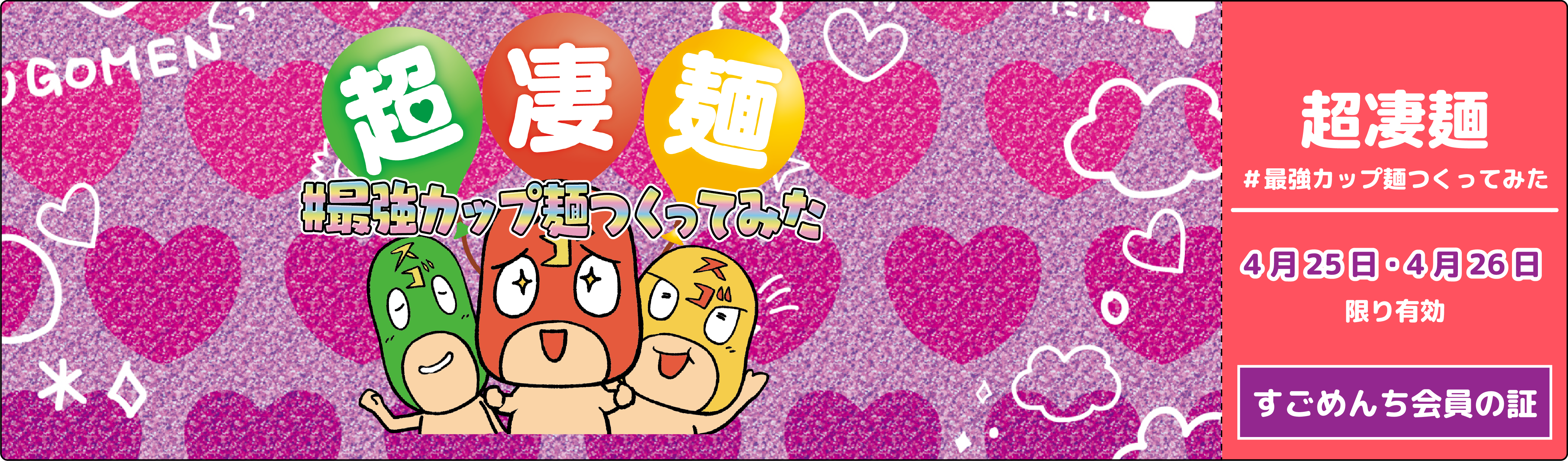 ページ下部の画像が表示された画面を「超凄麺 #最強カップ麺つくってみた」受付でご提示いただくと、なんと…