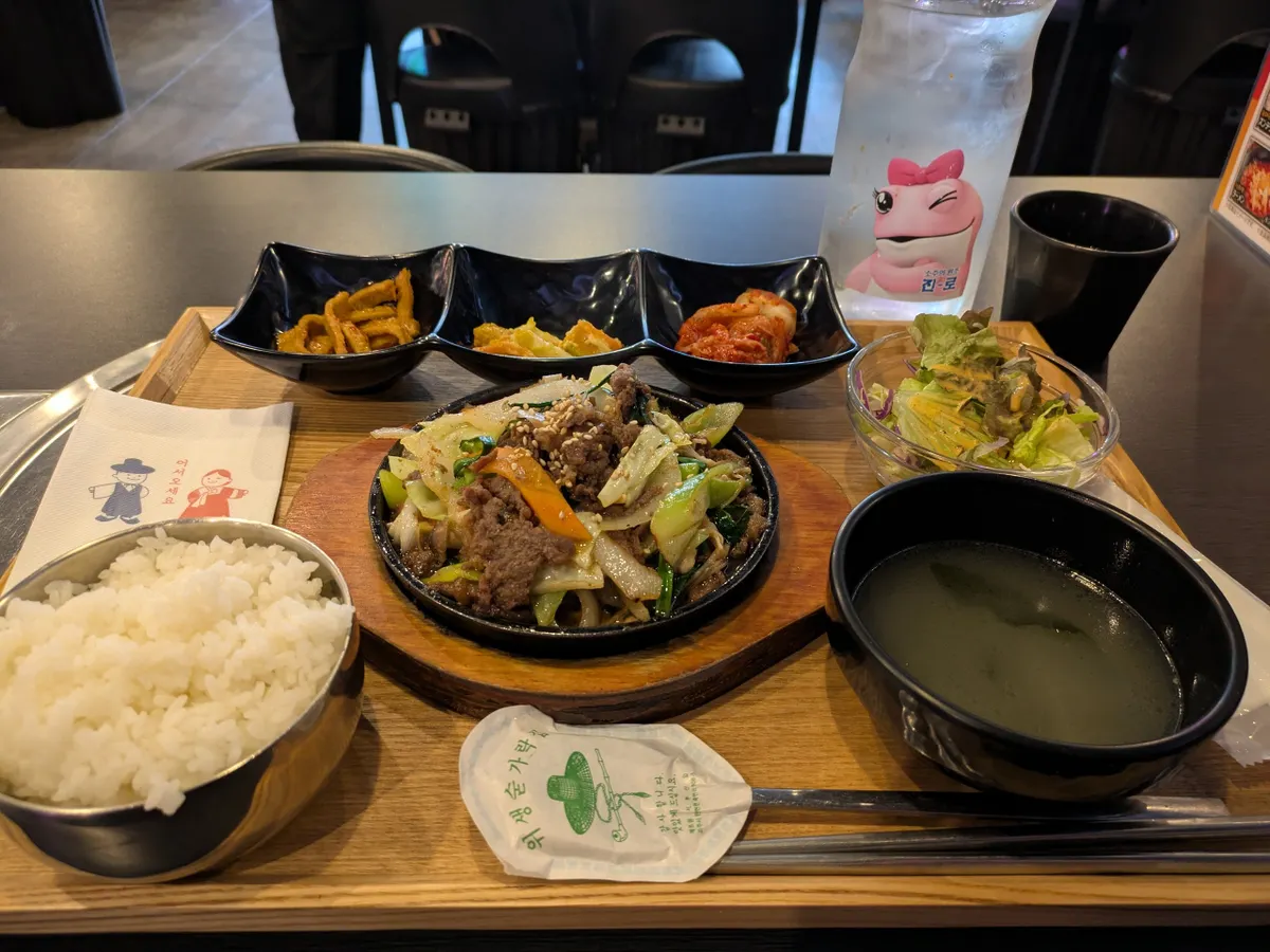 サラダ、わかめスープ、パンチャン(副菜)付きで950円