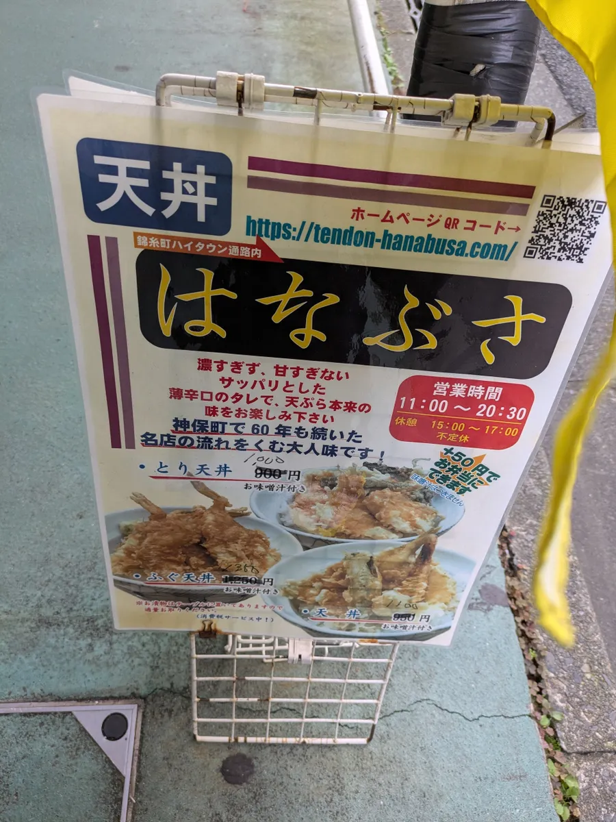 韓国料理じゃないけど花壇街には『はなぶさ』って天丼屋があり、ここのお兄さんは元・神保町『いもや』店員だった人で、薄味の美味しい天丼好きな人にオススメ!