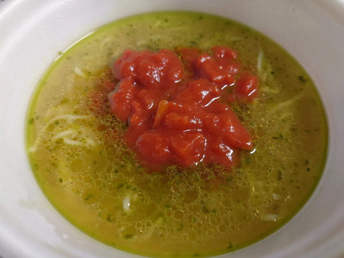今回は( 前回は濃厚豚骨をベースにしました)あっさり函館塩にバジルソースを合わせた、1秒アレンジです。バジルのフレッシュな香りと鮮やかな緑でテンションMAX!さらにバジル、トマト、チーズの抗酸化作用で健康間違いなしの逸品です!