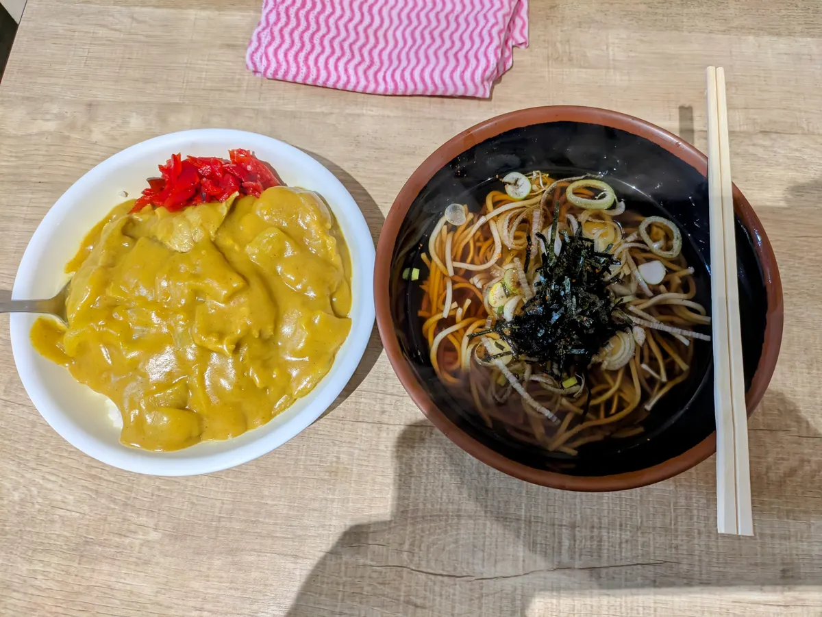 「ミニカレーライス」¥500 と「半そば」¥280 をポチッと👉