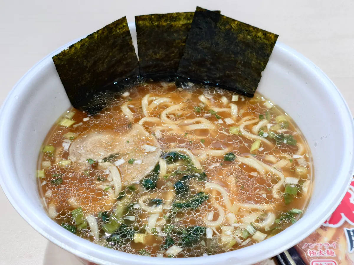 トップ > 今日の凄メシ! > 凄麺 食べました! > 今日は「横浜家系」です 中電前の八百屋 2026/01/20 07:50 今日は「横浜家系」です 今朝は「横浜とんこつ家 豚骨醤油味」をいただきました。凄麺の中で一番のリニューアルをしているそうです。 スープはかなり豚骨が濃厚でした。醤油味も結構効いていて、これだけで食べましたが、途中からご飯が欲しいと思いました。 ご飯を用意しとけばなぁ。 スープに浸した海苔を巻いて食べたい。 この商品もあまり食べた記憶がなかったです。確認したら3回目でした。 以前の蓋の写真と比べて、スープの濃さが格段に濃いですね。 ごちそうさまでした。 横浜とんこつ家 家系 豚骨醤油味 ご飯欲しい いいね 共有する 共有する X facebook LINE リンクをコピー コメントする 1 件の返信 (新着順) ミュートしたユーザーの投稿です。 投稿を表示 くろねこ 2026/01/20 09:15 その食べ方まさに家系! 欲しくなりますよね(^^ わかります。 いいね 返信する ミュートしたユーザーの投稿です。 投稿を表示 中電前の八百屋 2026/01/20 11:01 自分は、家系ラーメンや富山ブラックを食べる時は、白ご飯を一緒に食べるのが一番と思ってます。 今回は無理でした。 いいね 返信する ミュートしたユーザーの投稿です。 投稿を表示 くろねこ 2026/01/20 11:07 私もそう思います✋ あと、埼玉スタミナもw いいね 返信する