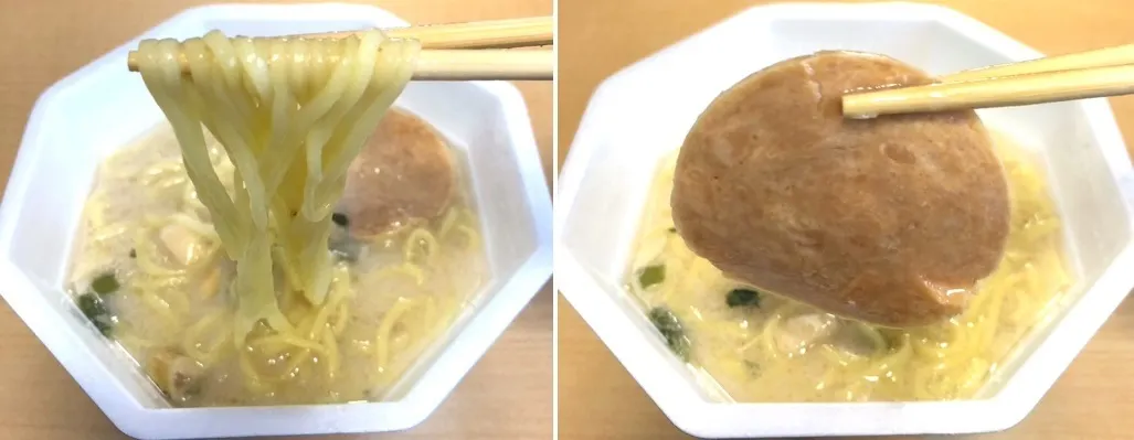 ノンフライ麺ですが、まあるい麺、そして鶏チャーシューもしっかり肉厚です!!