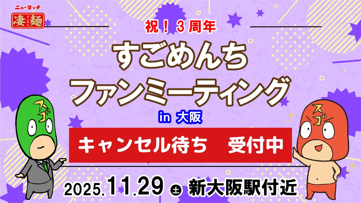 先日締切となりました【すごめんちファンミーティング in 大阪】への申し込み、たくさんのご応募をいただき、本当にありがとうございました!