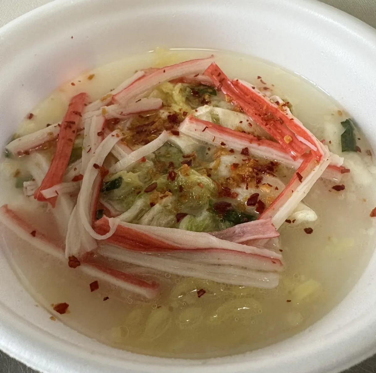 投稿を表示モチモチの麵にスープが絡まりカニカマのトッピングも背脂入り白湯スープによく合いますね