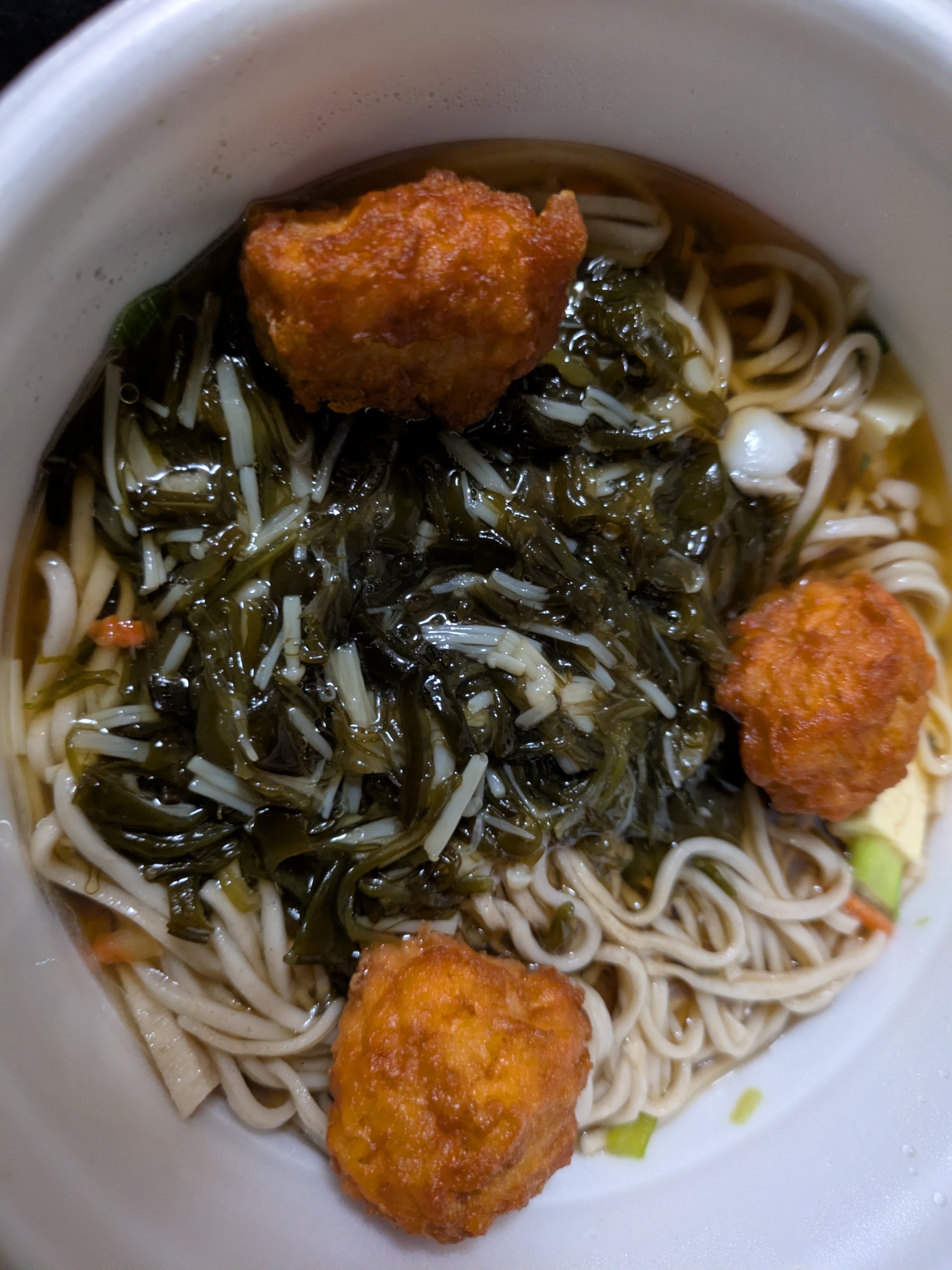 トップ > 今日の凄メシ! > 凄麺 食べました! > 茨城けんちんそば みんとり 2026/04/05 00:54 茨城けんちんそば 39プレゼントでドカッと貰った筈の茨けん(どんな略し方や)も残り僅かになってまいりました。。 でも昨日浅草の某スーパーでまた安く買えたので(賞味期限9月)、安心してストックの最後(賞味期限6月)を開けちゃいます えのきめかぶとLS100「ころから(コロコロした唐揚げ)」を乗せました 茨けんといえば山を想起させられる土の香りですが、海の幸・めかぶも合うぞ! 唐揚げでたんぱく質も足して満足満足! まだもう少し、一緒にいてね、茨けん! 茨城けんちんそば いいね 共有する 共有する X facebook LINE リンクをコピー コメントする 3 件の返信 (新着順) ミュートしたユーザーの投稿です。 投稿を表示 くろねこ 2026/04/05 10:28 春は海藻の季節🎉 そばと海藻相性もバッチリ! 体にもバッチリ😊 いいね 返信する ミュートしたユーザーの投稿です。 投稿を表示 ゲーマーママ 2026/04/05 08:53 めかぶ 身体に良さそうですね✨ 買ったことないような。食べてみようかな? 美味しそうですね🍀 いいね 返信する ミュートしたユーザーの投稿です。 投稿を表示 チョコマシュマロ 2026/04/05 02:17 みんとりさん😸 めかぶですか🤔 めかぶともずくはちょっと苦手系ですね😅 買ったことありません😺 唐揚げまでONして限界突破してますね😺 茨城けんちんそばは今季1度食べただけのような🤔 島には置いてませんし 最近はお取り寄せもめっきりですね😅 いいね 返信する ミュートしたユーザーの投稿です。 投稿を表示 みんとり 2026/04/05 03:50 チョコマシュマロさん わりと好き嫌いありますね( ̄ー ̄)ニヤリ わたしは海藻系大好きです! めかぶやもずくにはフコイダンがあるので癌除けのお守りとしても食べてます✨️ 凄麺の蕎麦大好きなのであまり出回らない春夏はちょっと寂しい😢 いいね 返信する
