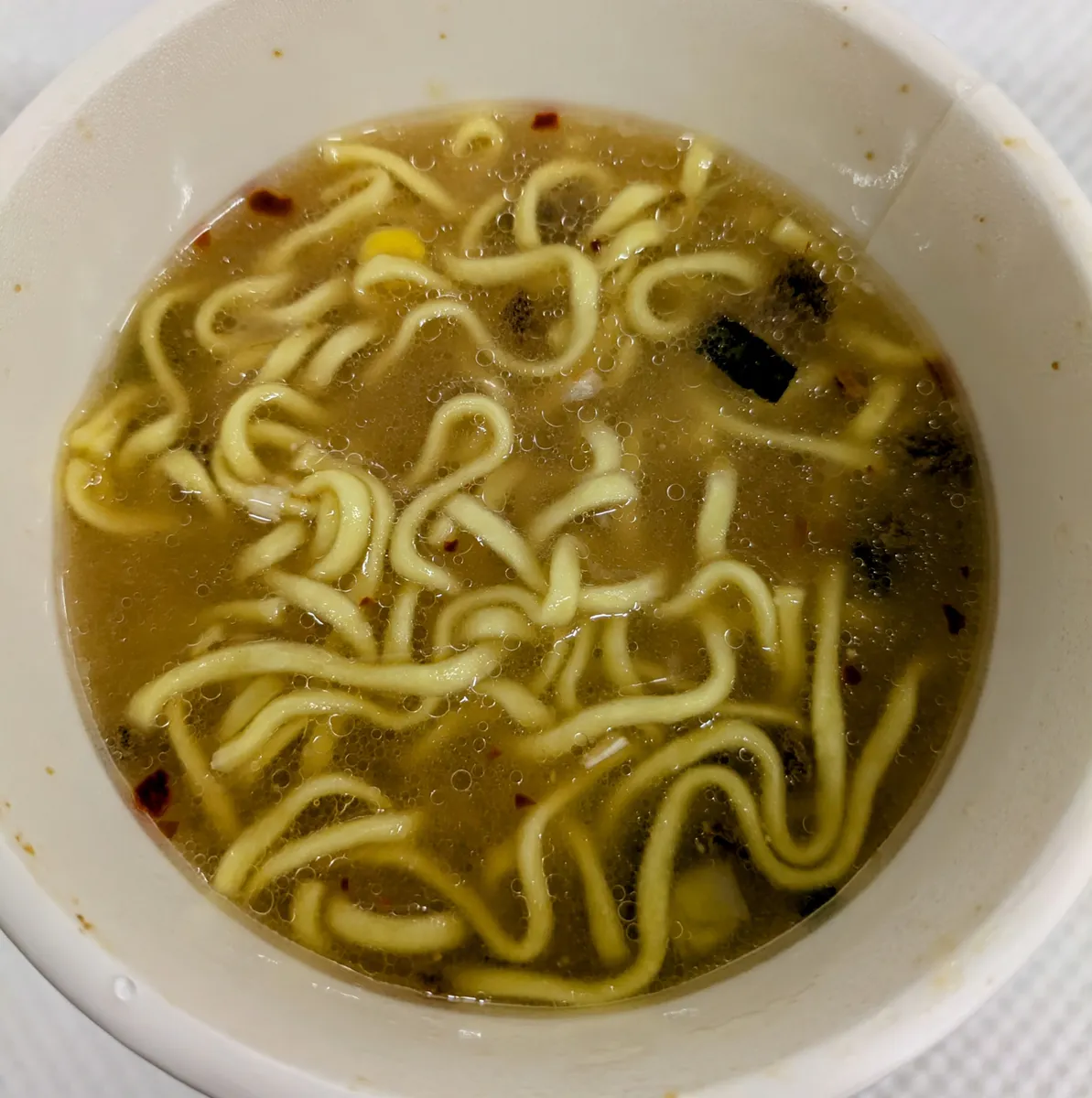 トップ > 今日の凄メシ! > 千年こうじや監修 濃厚味噌ラーメン 八海山酒粕仕立て くろねこ 2025/12/01 16:24 千年こうじや監修 濃厚味噌ラーメン 八海山酒粕仕立て 半年以上ぶりのヤマダイさん以外のカップ麺 八海山酒粕仕立てって所に負けて買ったやつ😅 熱湯3分 油揚げ麺 かやくは 肉そぼろ、コーン、ねぎ、唐辛子 おやつはカールコーンポタージュ味に似た香りがします。 ん〜、酒粕感じません🤔角のないコーン香る味噌スープ 麺はモチモチしてました。 京都伏見酒粕ラーメンをイメージしちゃっていたから 拍子抜けしました😅(会社に酒粕さえあれば…) ご馳走様🙏でした。 【千年こうじや】 八海山酒造が立ち上げた「米、麹、発酵」をテーマにしたブランド いいね 共有する 共有する X facebook LINE リンクをコピー コメントする 2 件の返信 (新着順) ミュートしたユーザーの投稿です。 投稿を表示 新華 2025/12/02 06:39 これ、よく行くお店に積んであるのをいつも横目で見て気にはなってました。濃厚味噌が強くて酒粕が霞んでしまうんですかね🤔 いいね 返信する ミュートしたユーザーの投稿です。 投稿を表示 まぼさく 2025/12/01 23:56 八海山は全く酒の飲めない新潟出身の先輩がよく土産でくれてて、絡み酒を仕掛けてくる別の先輩と八海山飲んでて「あーらアラアラ、これで終わり?」と執拗に絡まれて轟沈したステキな思い出が。 いいね 返信する ミュートしたユーザーの投稿です。 投稿を表示 くろねこ 2025/12/02 03:27 素敵な先輩と素敵な八海山エピソードありがとうございます😊 日本酒のテイスティングが出来ない私が (甘口、辛口すら間違える)この商品語るべきでは なかったのかな🤔と今、思いました。 いいね 返信する