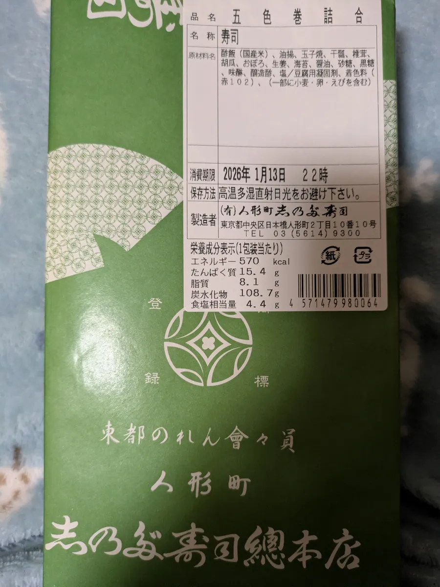 人形町 志乃多寿司 總本店の折詰類が半額!だったのでこちら(五色巻詰合せ)は明日の朝食用に買ってきました♪