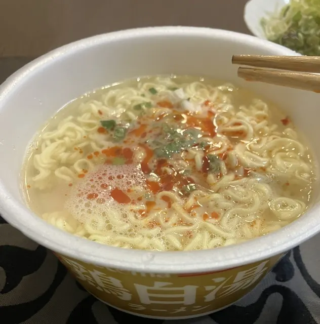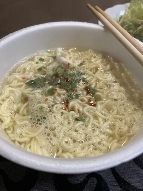 フライ麺に具材はネギと唐辛子🌶️