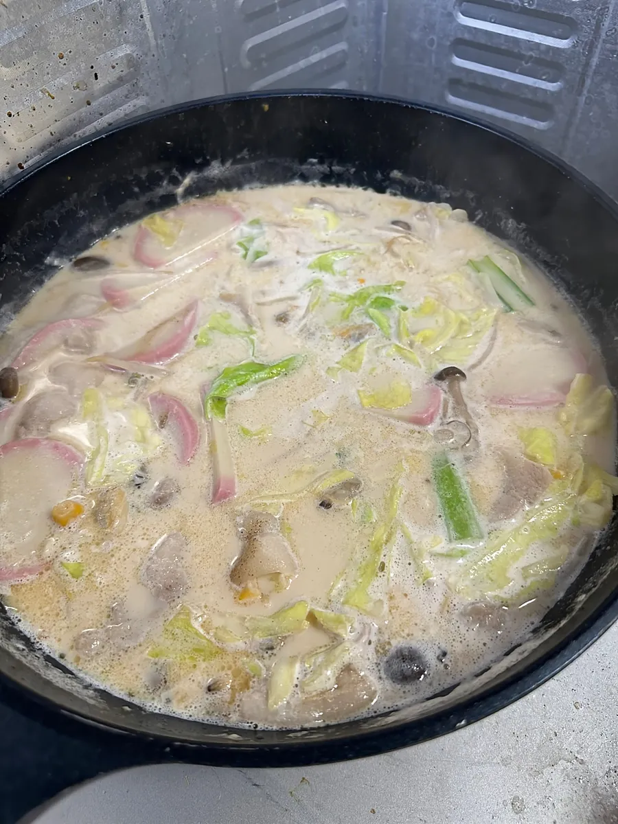 トップ > 今日の凄メシ! > 自作ちゃんぽんPart2 クロネコ 2025/12/21 03:04 自作ちゃんぽんPart2 リベンジでまた制作しました。 基本ベースは水と牛乳です。長崎の人に見せたら怒られますね😅 入れた具材は豚バラ肉、キャベツ、ニンジン、もやし、しめじ、海老、むきアサリ。 スープの味は前回と違って最後まで飲みたくなる味でした。某チェーン店とまではいきませんが納得の味でした😄 ごちそうさまでした😋 土曜日は休みでしたがスタッドレス交換のため昼から活動していたため起きたのは0時です😅 休みの日はこんなかんじです。 ではまた🐾 いいね 共有する 共有する X facebook LINE リンクをコピー コメントする 2 件の返信 (新着順) ミュートしたユーザーの投稿です。 投稿を表示 ミック 2025/12/22 10:27 とっても美味しそうな自家製ちゃんぽんですね お店のようなとってもおいしそうです 魚介からの旨みもたっぷりですね いいね 返信する ミュートしたユーザーの投稿です。 投稿を表示 くろねこ 2025/12/21 11:12 動物、魚介出汁が出ていい感じですね😊👍️ いいね 返信する