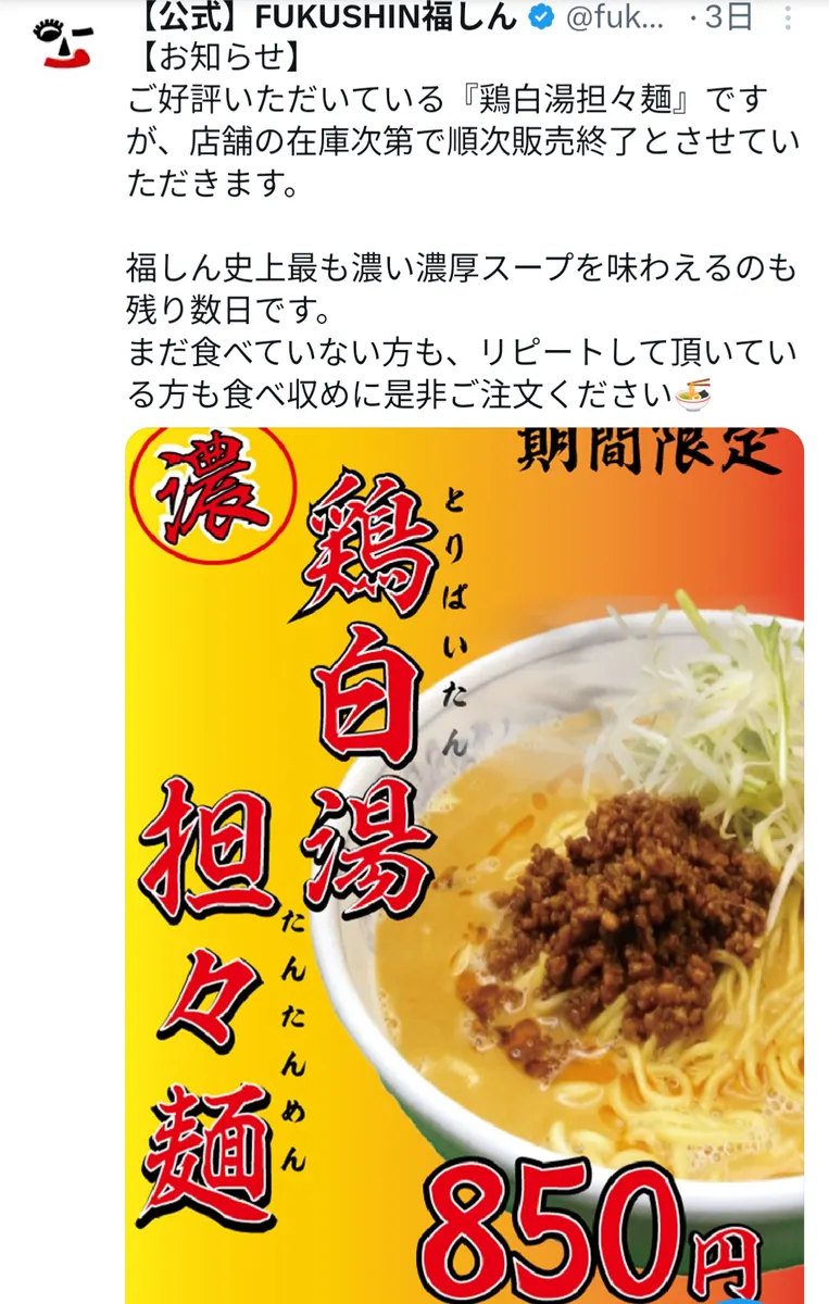 「あ〜今年も鶏白湯担々麺の季節かー」とのんびり構えてたら!