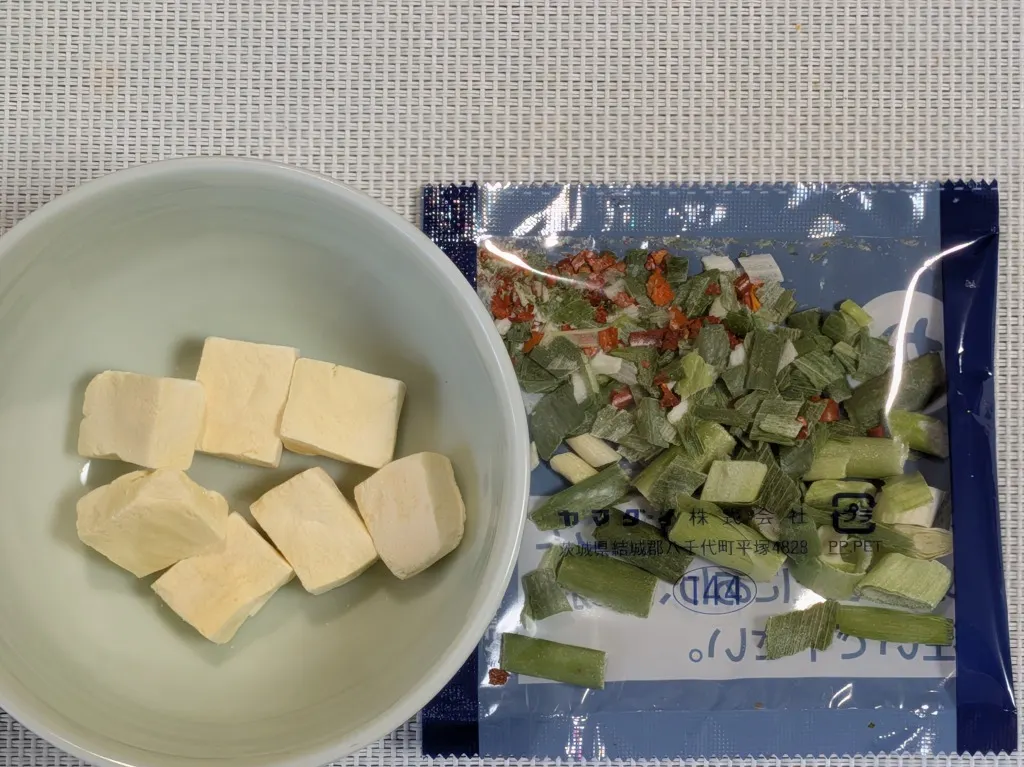 豆腐ともう1袋はニラ、ねぎ、唐辛子ですね(自分はこちらは後入れにしました)