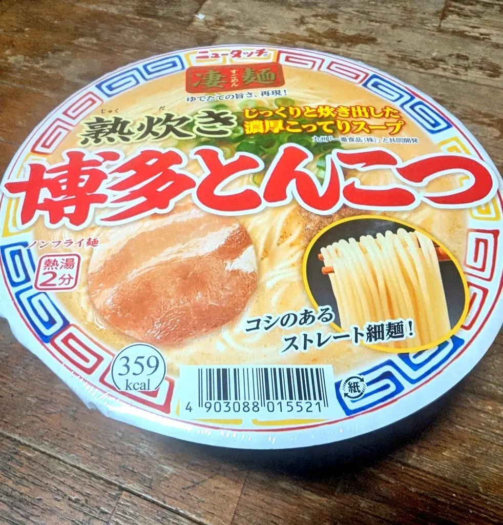 博多どころか九州にすら行ったことがないワタクシめが語るのはおこがましいですけど、とんこつラーメンモチーフのカップ麺歴は長い(最初は明星さんのうまかめん?)のでね…