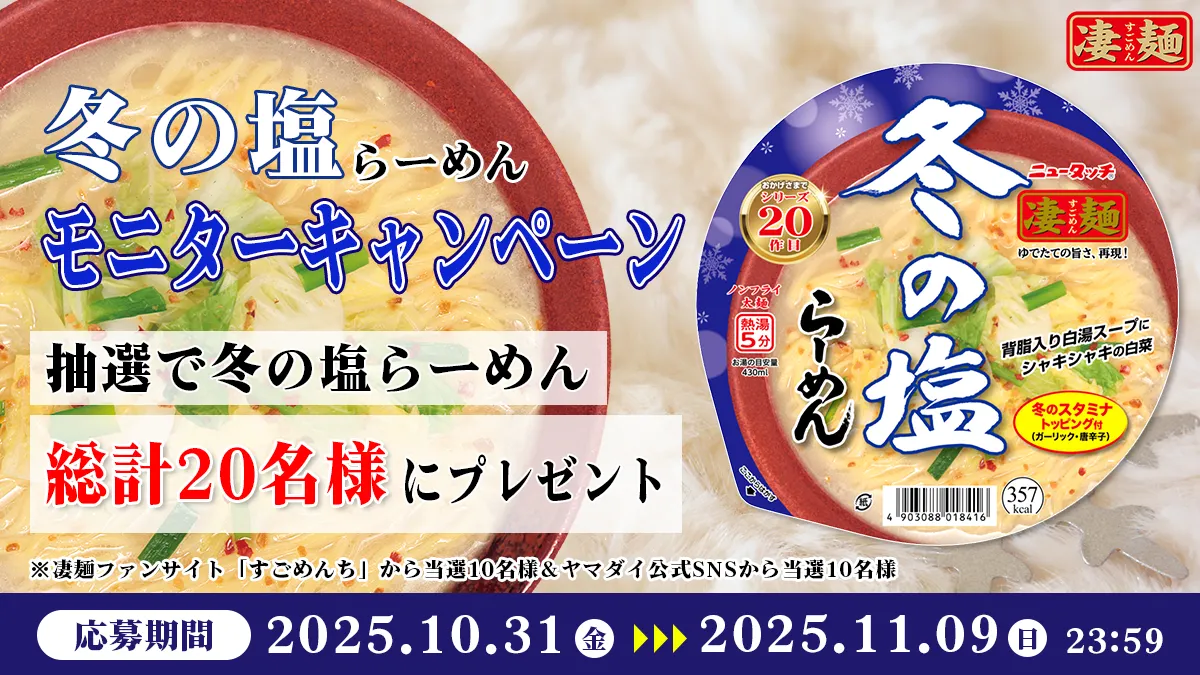 今年で20作目となる「冬の塩らーめん」を、たくさんの方に楽しんでいただきたい!という思いから、モニターを募集します!