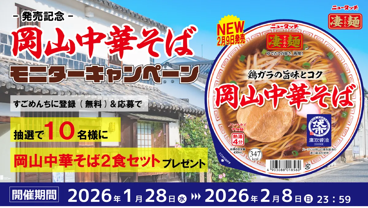 2026年2月9日(月)に発売することを記念し「凄麺 岡山中華そば」のモニターキャンペーンを実施します✨