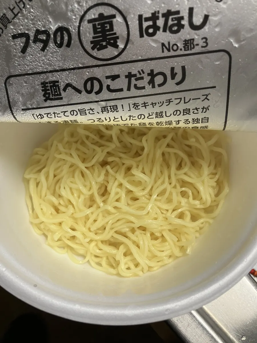 熱湯に酒粕を溶かし軽くよりちょい強めに沸騰させ、湯戻しを終え湯切りをした麺に注ぎます