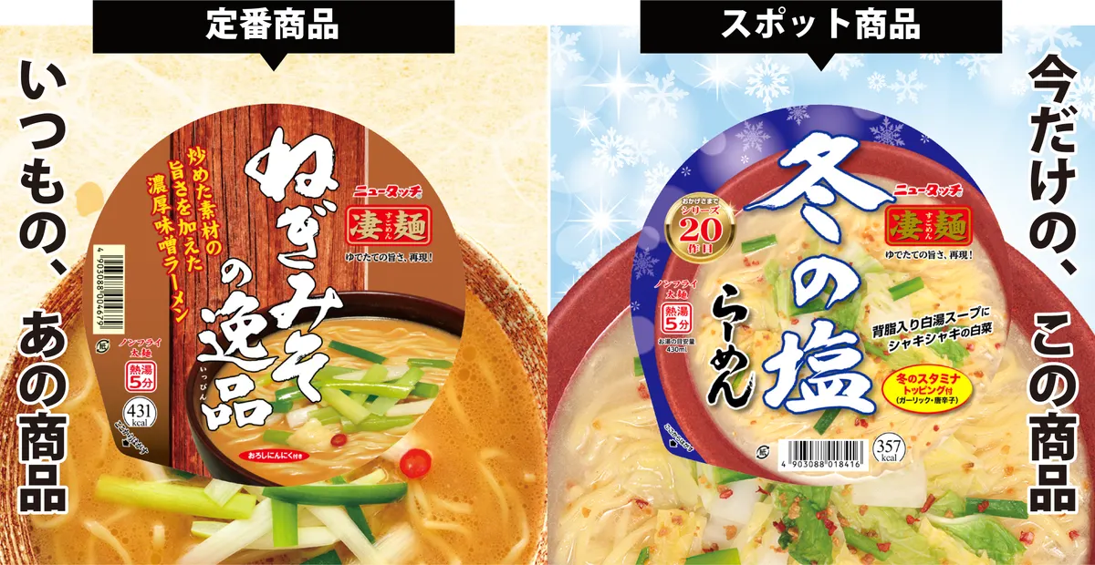 春夏:焼そば・汁なし担担麺など、暑い季節向けの商品