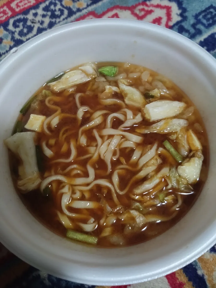 カップうどんは油揚げ麺のほうがスープ先入れなので味がしみますね