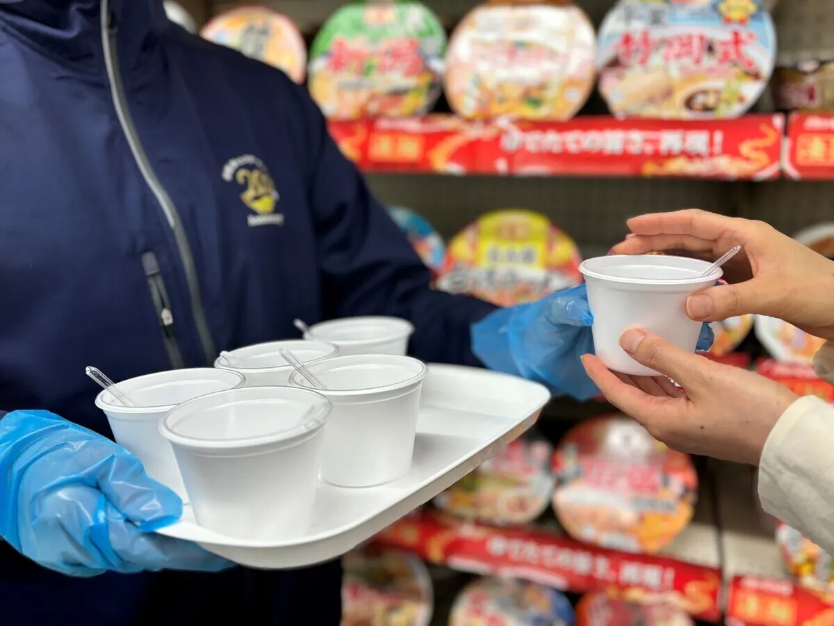 営業部門の社員だけでなく、普段は直接お客さまとお話しすることが少ない部門の社員も参加し、スーパーマーケットさんなどで凄麺の試食をお配りしています。イベントによっては社長自らがスーパーの店頭に立ち、凄麺をアピールしていることも😲