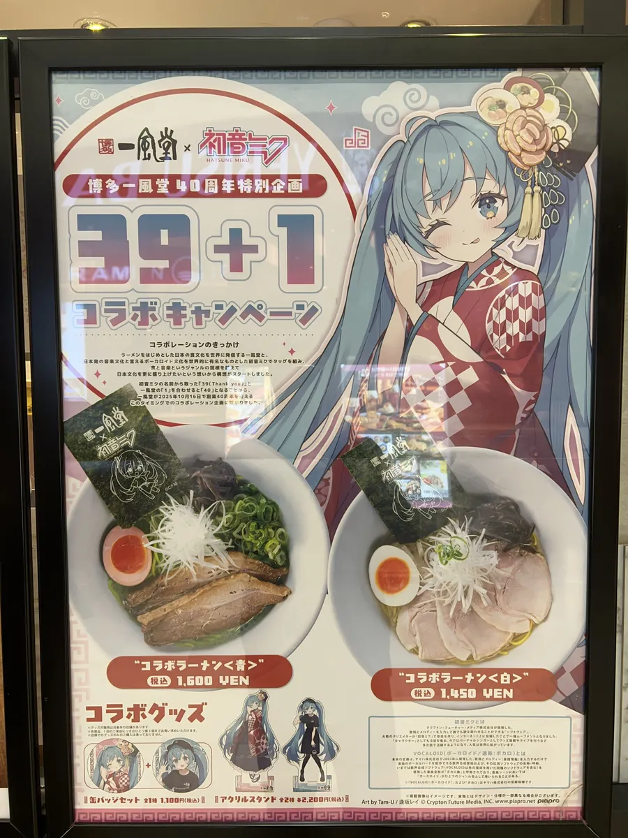 一風堂の『1』と初音ミクの『39』を足して40周年!コラボ