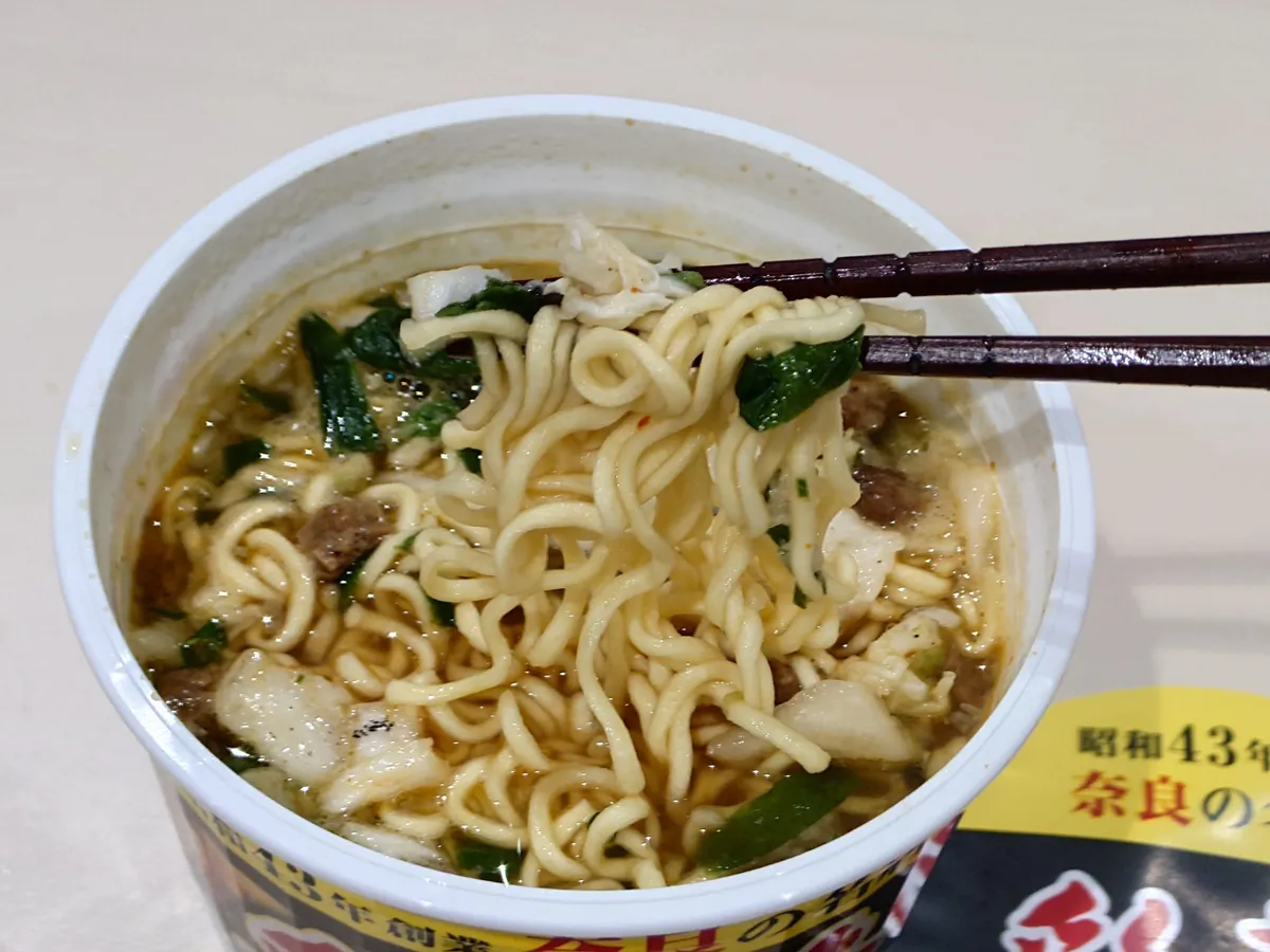 天理スタミナラーメンの元祖のお店のカップ麺で、関西のローソン限定販売です。