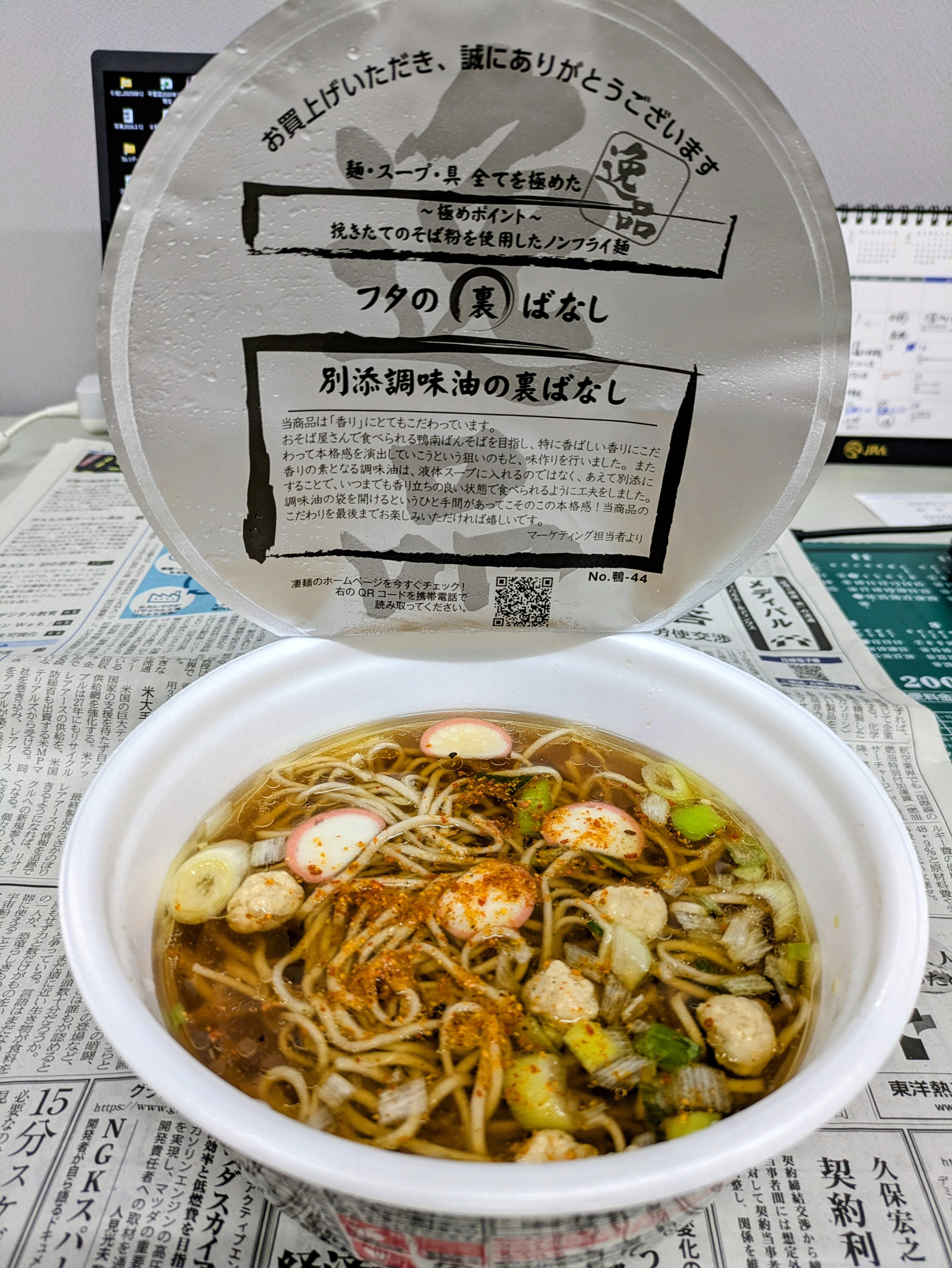 トップ > 今日の凄メシ! > 凄麺 食べました! > 鴨だしそば&革命そば くろねこ 2026/03/23 12:16 鴨だしそば&革命そば 鴨だしそば 革命そば 鴨だし熱湯4分後に革命に熱湯! 今回は電話等のAccidentもなく、また時間に無駄なく 美味しく2つ食べ終えました。 ご馳走様🙏でした🌸 いいね 共有する 共有する X facebook LINE リンクをコピー コメントする 3 件の返信 (新着順) ミュートしたユーザーの投稿です。 投稿を表示 まちこしまこ 2026/03/23 17:57 連日の替玉風!!! いいね 返信する ミュートしたユーザーの投稿です。 投稿を表示 みんとり 2026/03/23 17:34 革命そばの「そばで健康に」フタ、わたしも持ってるんですが見るたびにキリスト教看板を連想してしょうがないので、看板ジェネレーターで作っちゃいました🤣 いいね 返信する ミュートしたユーザーの投稿です。 投稿を表示 まぼさく 2026/03/23 23:43 みんとりさん、今日キレッキレですね~! 確かに「みつを」ではない いいね 返信する ミュートしたユーザーの投稿です。 投稿を表示 はにんどう 2026/03/23 12:42 蕎麦、二杯食いいいですね!! 岡山を食べて以来、ついかまぼこの枚数に目がいってしまいます🤣 いいね 返信する ミュートしたユーザーの投稿です。 投稿を表示 くろねこ 2026/03/23 16:01 美味しいけど満足感が得られないんで スープ飲まなければ問題ないだろうと自分で決めつけ食べました。 あ!その気になるかまぼこの枚数、頂きます✋ いいね 返信する