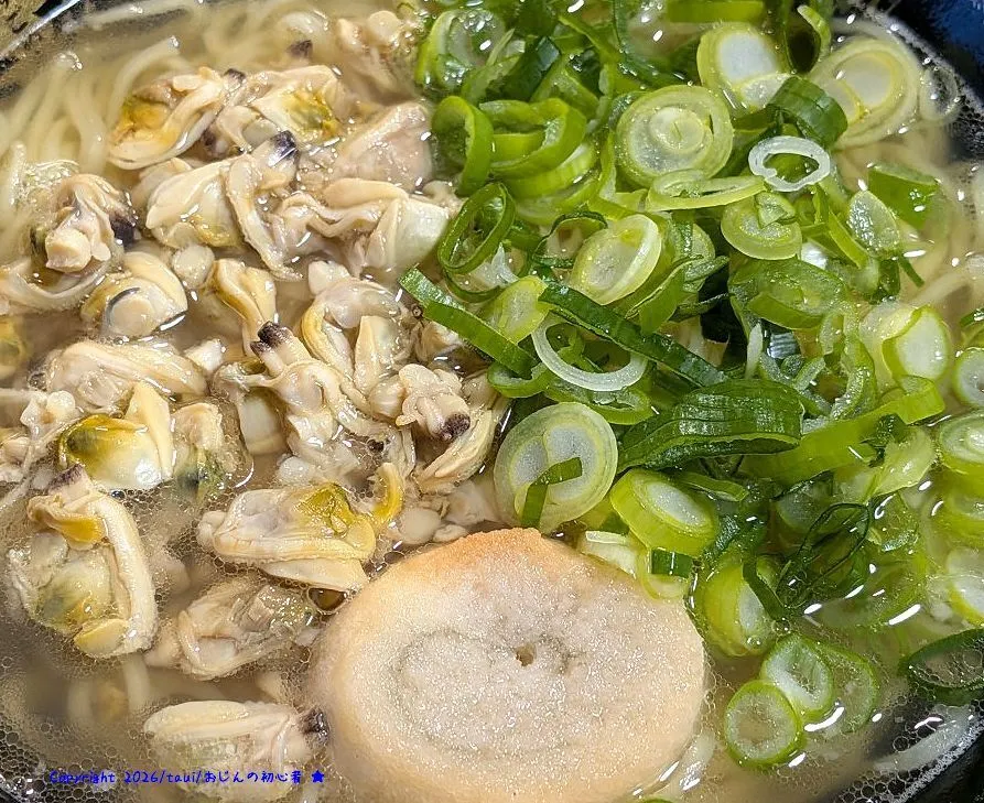 生の刻みねぎをたっぷり、そしてあさりむき身をトッピングします