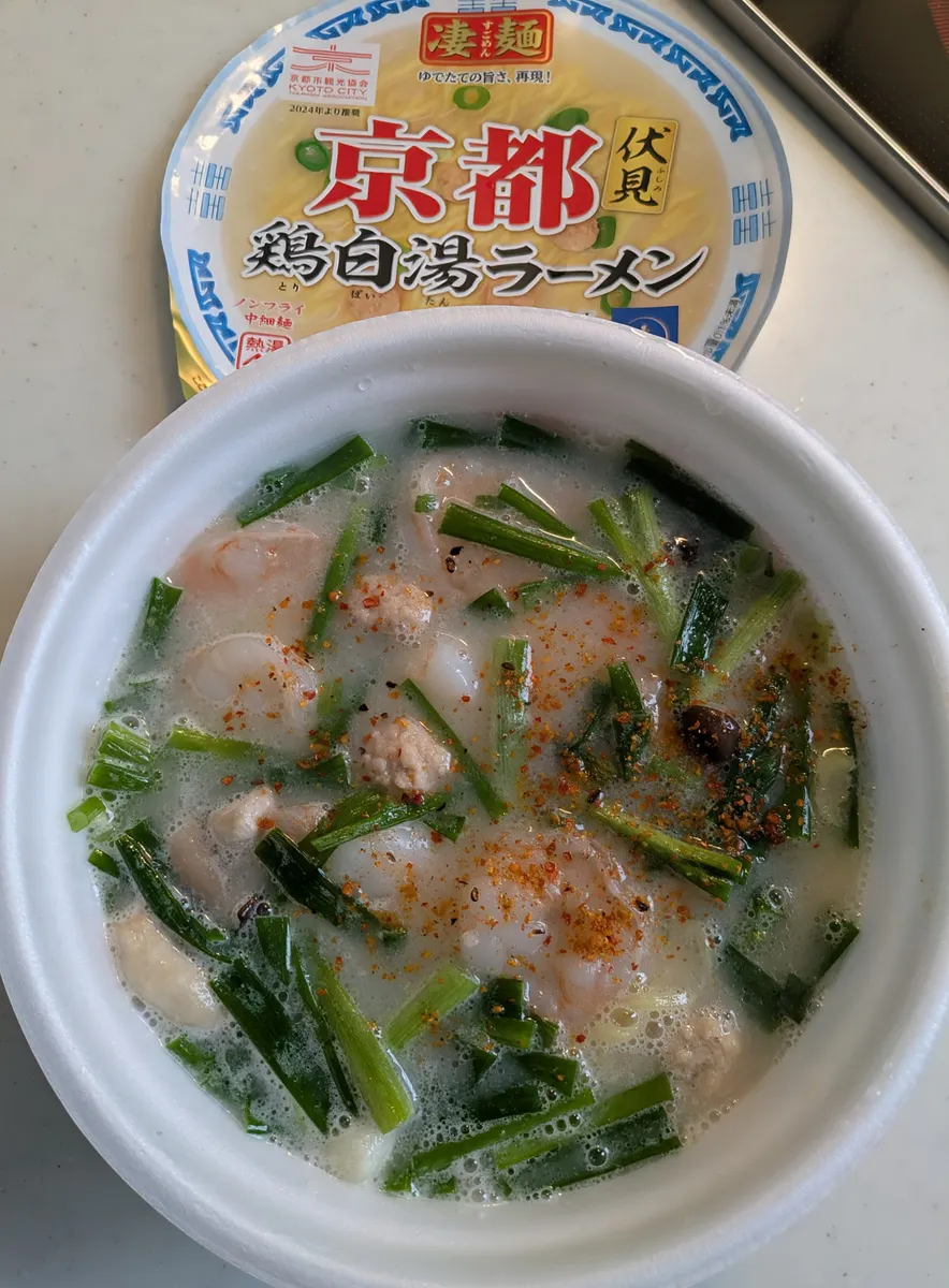 トップ > 今日の凄メシ! > 凄麺 食べました! > 鶏白湯はんなりスープにぷりっぷりのえび添えて くろねこ 2025/12/21 12:58 鶏白湯はんなりスープにぷりっぷりのえび添えて ゴロゴロ過ごしても腹は減る 昼は京都鶏白湯に 片栗粉まぶしたえびを蒸し、はんなりスープに投入! 柚子七味パラパラして完成です‼️ スープを鍋調理👍️熱々食べれて幸せ🎶 汗が出てきます💦 ご馳走様🙏でした😊 ※佐野さんは息子です。 スゴ活 京都伏見鶏白湯ラーメン 2杯目 はんなり いいね 共有する 共有する X facebook LINE リンクをコピー コメントする 1 件の返信 (新着順) ミュートしたユーザーの投稿です。 投稿を表示 たうい@おおさか 2025/12/22 01:53 おはようございます♫ そういや、最近のカップ麺の新商品で 海老入っている商品なくなりましたね・・・ 現行凄麺でも海老入りって、ないですよね いいね 返信する ミュートしたユーザーの投稿です。 投稿を表示 くろねこ 2025/12/22 10:43 カップヌードルの醤油くらいですかね? 最近食べてないのでわかりませんが🤔 冷凍剥きエビはそんなにお高くないので 手間かかりますが、プリっぷりで美味しいです👍 いいね 返信する