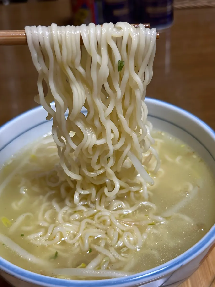 上げてみて思いましたがやっぱり袋麺は麺が長いですね😄 肝心のお味ですが、啜った瞬間すだちの香りが立ち上ります。でもあまりよく混ざってなかったようで、香りを強く感じたのは最初だけですね。