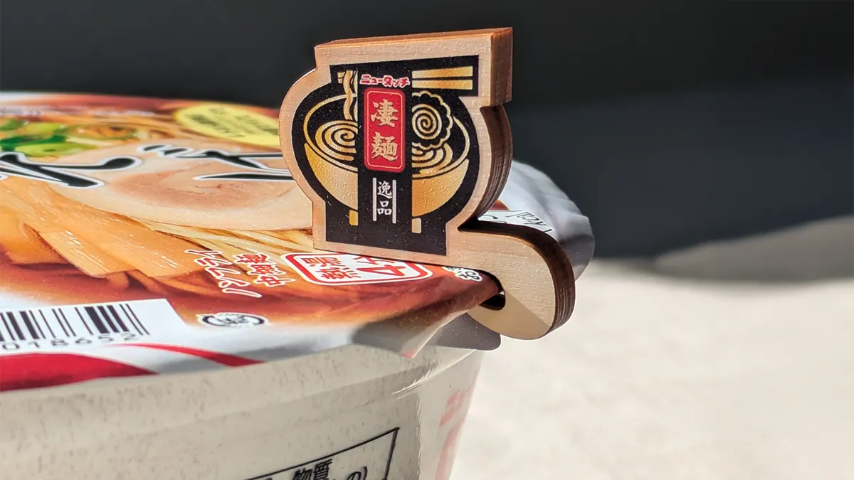 カップ麺にお湯を注いだあと、めくれ上がりそうになるフタをしっかりホールド!