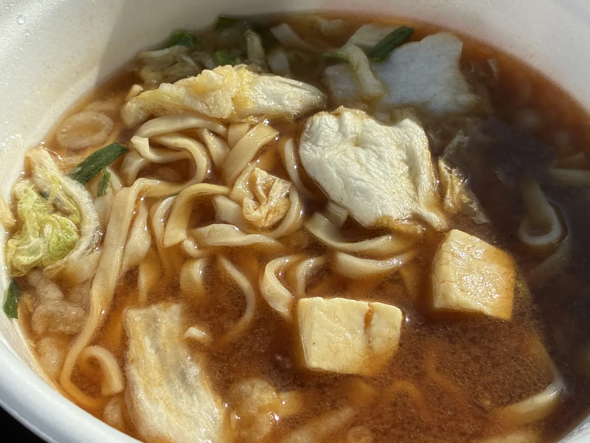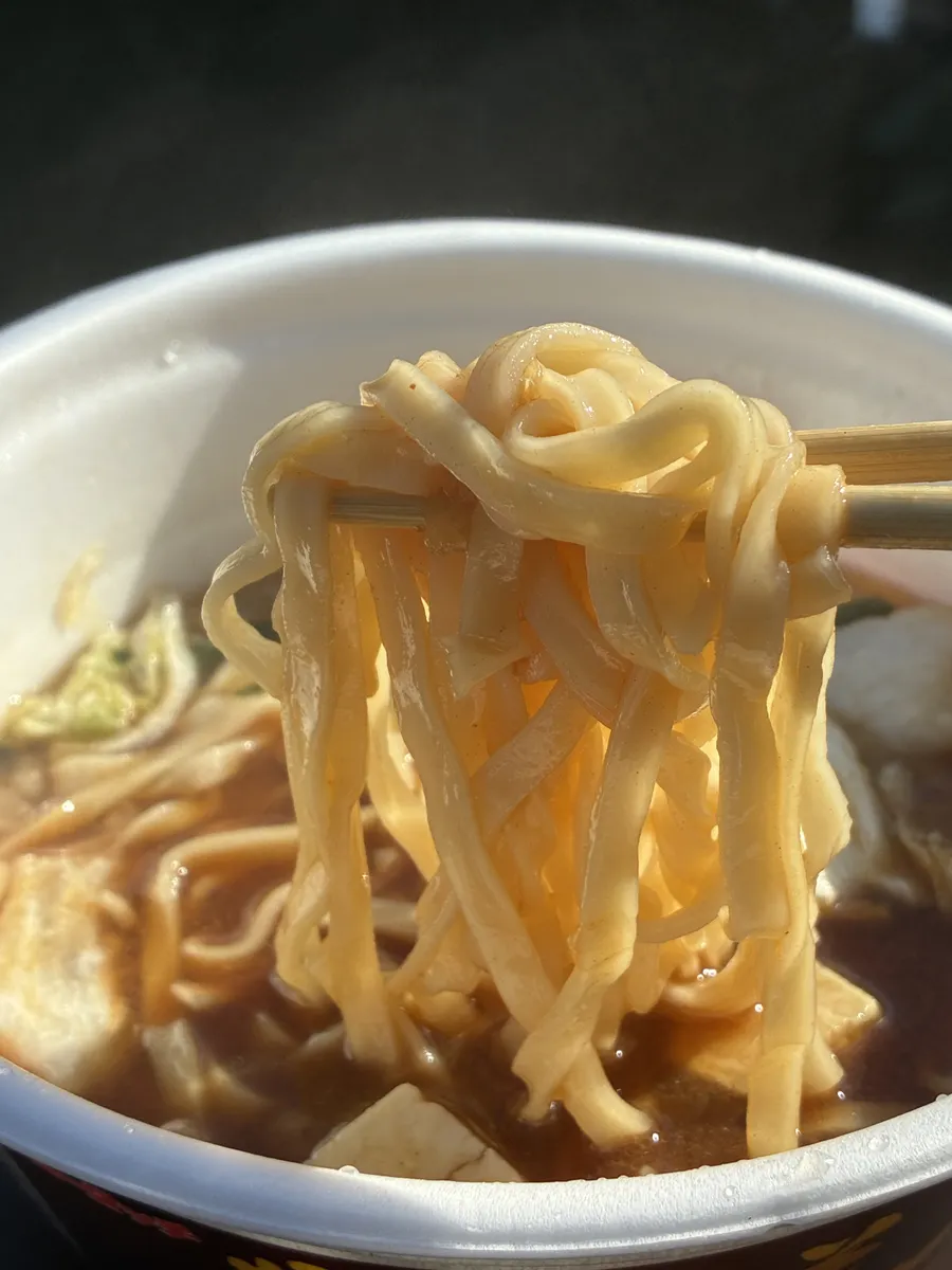 トップ > 今日の凄メシ! > 凄麺 食べました! > 〜アウトドア坂東みそ煮込みうどん〜 ひろし 2025/11/16 21:01 〜アウトドア坂東みそ煮込みうどん〜 茨城出張中のひろしです 仕事の合間に恒例のアウトドア「坂東みそ煮込みうどん」を初食です🙌 実は本家の味を知らないので、どんな味か興味津々でした。スープは八丁味噌系のコクがあって濃厚な風味が鼻に抜けて、とても美味しいですね!麺は、やや硬めの噛みごたえが山梨の「吉田うどん」を彷彿とさせられました…いかんせんお店の味を知らないのでいつか食べ比べてみたいと思います! まさに凄麺の味噌味はハズレなし!美味しかったです😋 坂東みそ煮込みうどん しばらくはアウトドア凄麺生活…いや出張続きます いいね 共有する 共有する X facebook LINE リンクをコピー コメントする 7 件の返信 (新着順) ミュートしたユーザーの投稿です。 投稿を表示 あひるん 2025/11/17 11:51 アウトドア、美味しそうです!! いいね 返信する ミュートしたユーザーの投稿です。 投稿を表示 くろねこ 2025/11/17 11:23 八丁堀の旦那がいそうな場所ですね。時代劇撮影場ですか🤔? そんな素敵な場所で八丁味噌系のコクが何とも言えない坂東みそ煮込み 格別の美味しさだったことでしょう✨ いいね 返信する ミュートしたユーザーの投稿です。 投稿を表示 はにんどう 2025/11/17 10:06 その風景で坂東みそ煮込み、いいですね!! 私は違った意味でのアウトドア凄麺を...ww いいね 返信する ミュートしたユーザーの投稿です。 投稿を表示 はみちゃん 2025/11/17 05:18 坂東のお味噌、めっちゃ美味しいですよね! 八丁味噌好きの私にはたまらない旨味 いいね 返信する ミュートしたユーザーの投稿です。 投稿を表示 たうい@おおさか 2025/11/17 01:46 おはようございます♬ しっかりした味噌味で美味しかったですね! 自分は次回は生卵オンしたいと思っております いいね 返信する ミュートしたユーザーの投稿です。 投稿を表示 39 2025/11/17 00:22 坂東さん美味しそうです🤤 茨城出張中であれば実店舗も寄れそうですね🍥 アウトドア凄麺うちも近場でチャレンジしてみようかな…🙈 いいね 返信する ミュートしたユーザーの投稿です。 投稿を表示 ひろし 2025/11/18 05:48 宿をとっている取手周辺には、ばんどう太郎ないのが残念ですが、美味いメキシカンのお店あって、モヒートとナチョスが出張の楽しみになってます😄 アウトドア凄麺はほんとオススメ!寒くなるほど湯気がもうもうとなって美味さ倍増です♨️ いいね 返信する ミュートしたユーザーの投稿です。 投稿を表示 クロネコ 2025/11/16 22:27 水郷っぽいイメージの画ですね。福岡の柳川を思い出します。 私は坂東は煮込みで食べるので歯応えはわかりませんが、噛み応えなら東名高速鮎沢PA上りの吉田うどんがよかったです。静岡にも吉田インターがありますが富士吉田の方らしいですね。 ふと書いていて昔の東名高速にあった建て直す前のラーメン屋のことを思い出しました。薄暗い店内で落ち着いてゆっくり食べられるいい店だったのにな。よく醤油の大盛りを食べていました。あっさり中華そば風で美味しかったです。その頃から思っていましたが、ラーメンは西に走るほど好みから遠ざかっていく😅 その思いは今でも変わりません。 SAやPAの建物もほとんどが建て替えもしくはリニューアルで昔の面影がありませんねぇ。 いいね 返信する ミュートしたユーザーの投稿です。 投稿を表示 ひろし 2025/11/18 05:39 さすがクロネコさんあちこちのSAご存知ですよね!SAはリニューアルで綺麗になってるけどどこも均一化してる感じもありますね。吉田うどんは毎日は飽きるだろうけど妙にあの噛みごたえある味食べたくなる時があるんですよね〜😄 いいね 返信する ミュートしたユーザーの投稿です。 投稿を表示 クロネコ 2025/11/18 05:45 自作のホットバージョン。温かいの好きですね。東名鮎沢の売店でも吉田うどん売ってます。 いいね 返信する