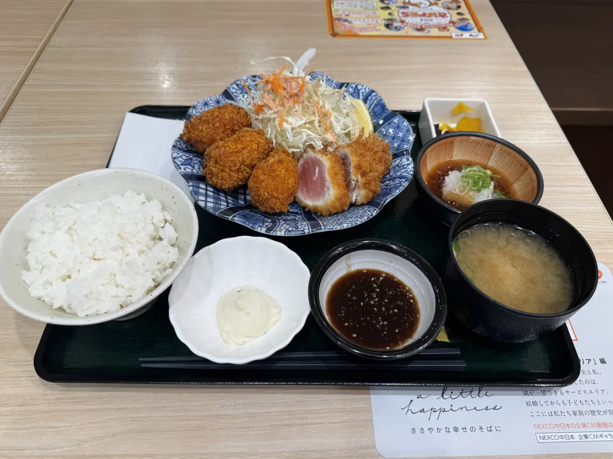 レアまぐろカツにカキフライ定食を