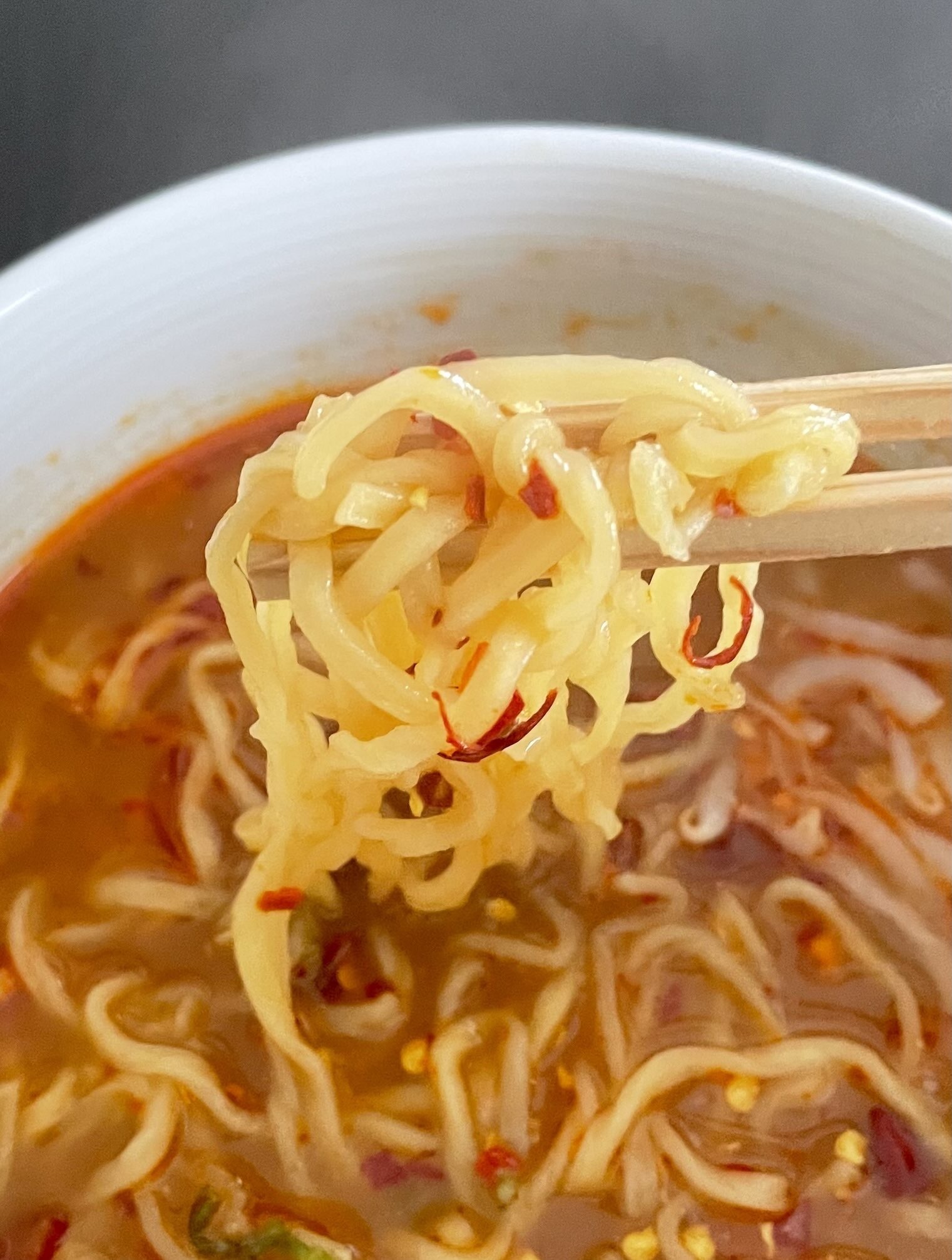 どこをつまみ上げても麺に纏わりついてくる唐辛子片!