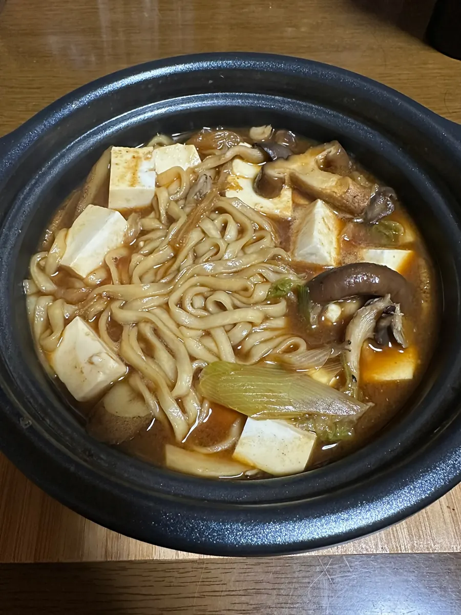 トップ > 今日の凄メシ! > 坂東味噌煮込みうどん クロネコ 2025/11/15 15:24 坂東味噌煮込みうどん を、また煮込んでみました😄 豆腐、ネギ、椎茸、平茸、ゴボウを入れて煮込みます。 うどんもよく味が染み込んで一緒に煮込んだ野菜のおかげで赤味噌の尖った角もまろやかになった気がします。 ただ・・・ この170番は何でしょう・・・。 食べ終わって後片付けをしていたら出てきました😅 入れる具材が多かったので忘れたようです。また何かを食べる時に使います。 ごちそうさまでした😋 ではまた🐾 いいね 共有する 共有する X facebook LINE リンクをコピー コメントする 2 件の返信 (新着順) ミュートしたユーザーの投稿です。 投稿を表示 くろねこ 2025/11/16 09:17 こちらは煮込むことで本来の力発揮するタイプと 思ってます。煮込み過ぎは注意ですが。 いいね 返信する ミュートしたユーザーの投稿です。 投稿を表示 新華 2025/11/16 06:59 煮込み系の仕込みはクロネコさんの手にかかれば間違い無しですよね! いいね 返信する