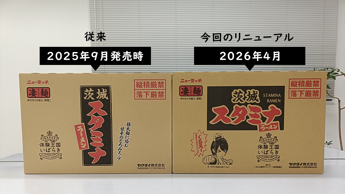 また、商品名が縦書きから横書きへチェンジし、茨城スタミナラーメンの持つ力強さを一層表現したデザインになりました✨